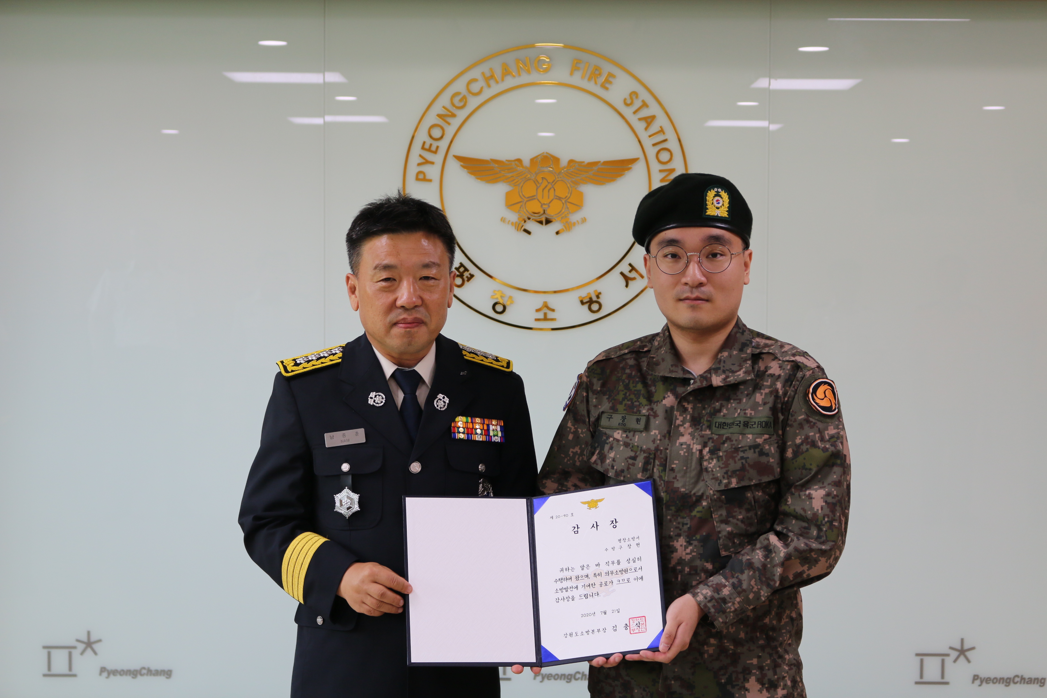 평창소방서는 21일 군 복무를 마치고 만기 전역하는 의무소방원 1명에 대한 전역식을 실시했다고 밝혔다.