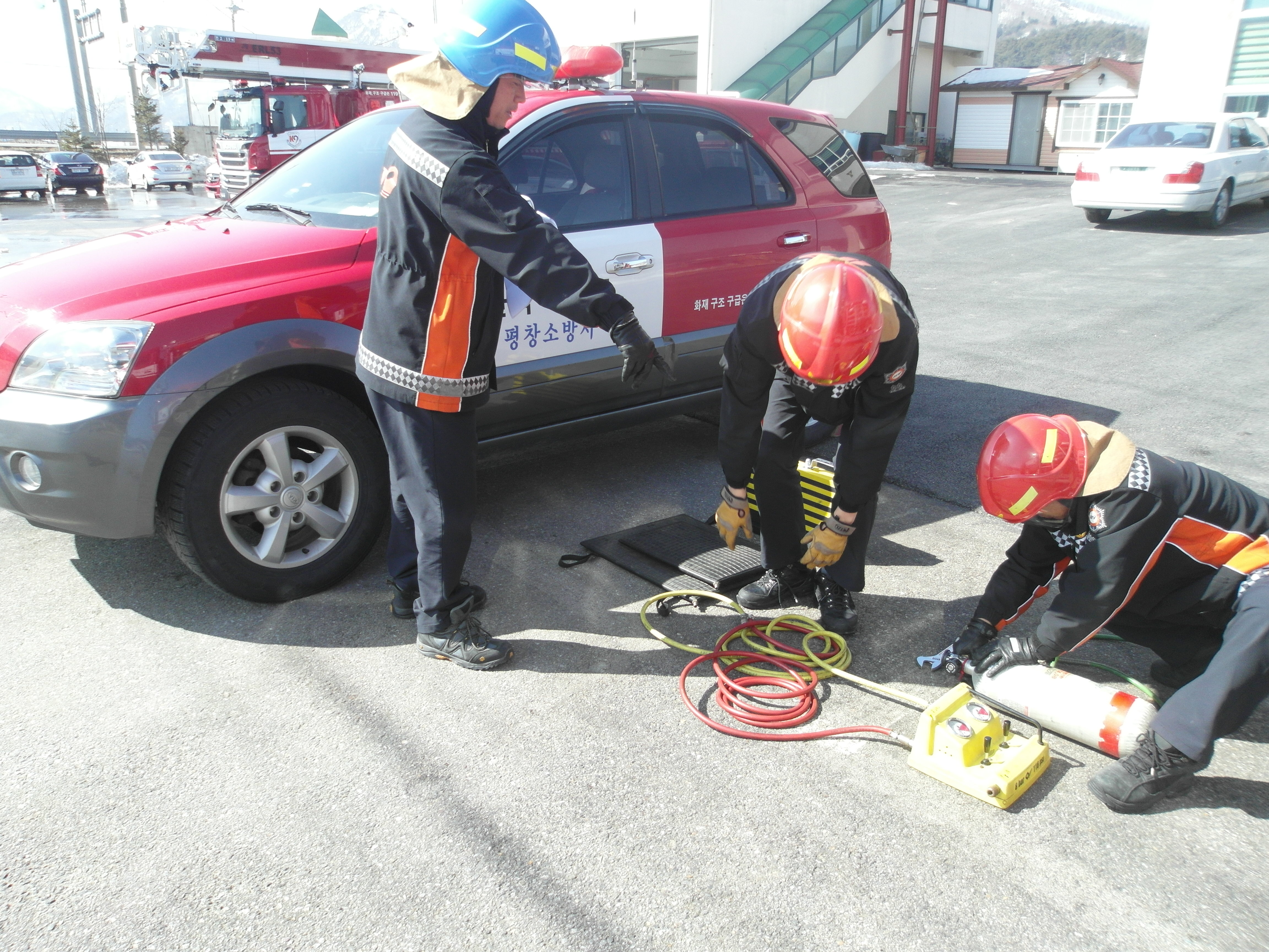 평창소방서(서장 김용락) 현장대응과 구조대에서는 2013.2.27 소방전술훈련을 실시하였습니다. 박유삼 대장님 지휘아래 유압스프레더, 유압절단기, 에어백을 사용하며 실전과같은 훈련을 전대원 적극 참여함으로써 현장에서는 보다 정확하고 신속하게 대응할 수 있습니다.