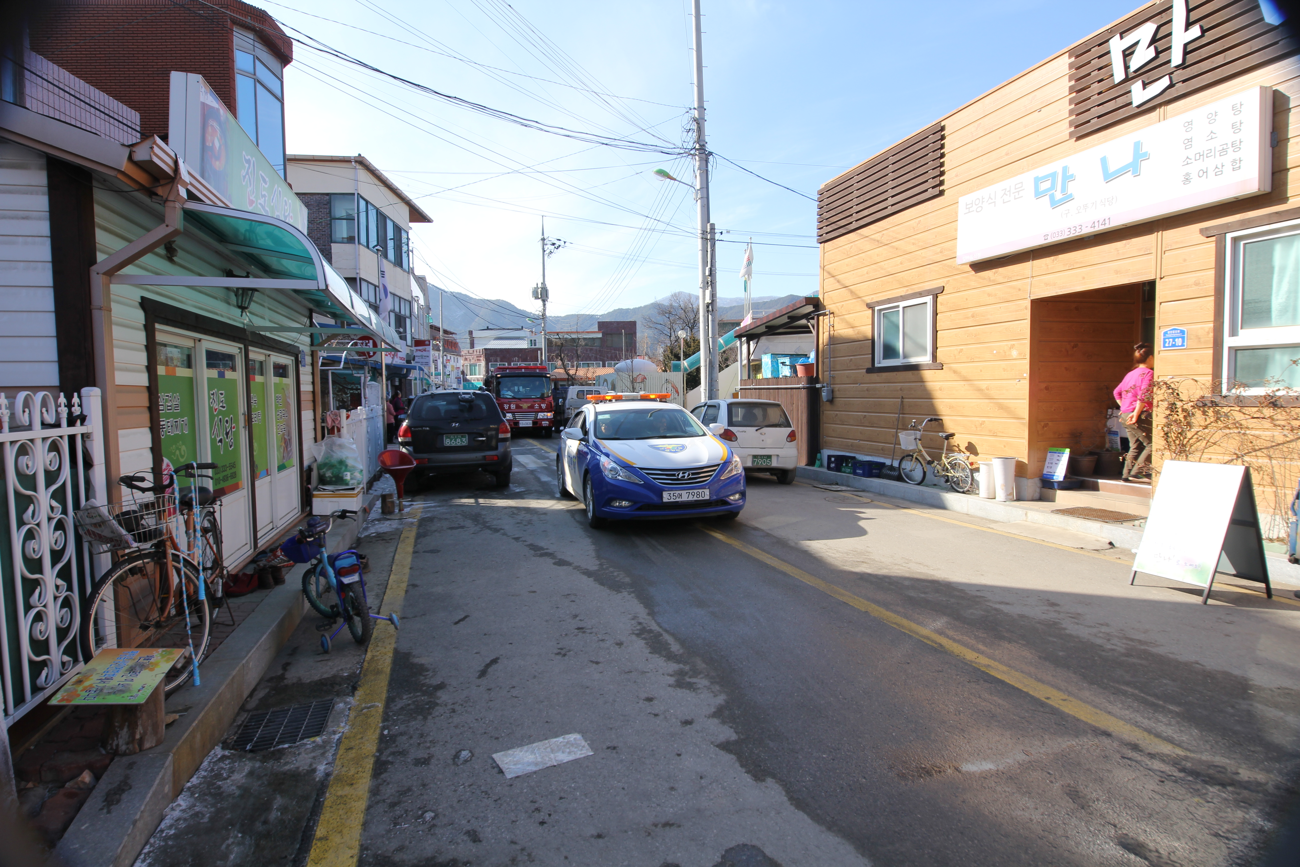 설 연휴 평창올림픽시장 소방차출동로확보 훈련
