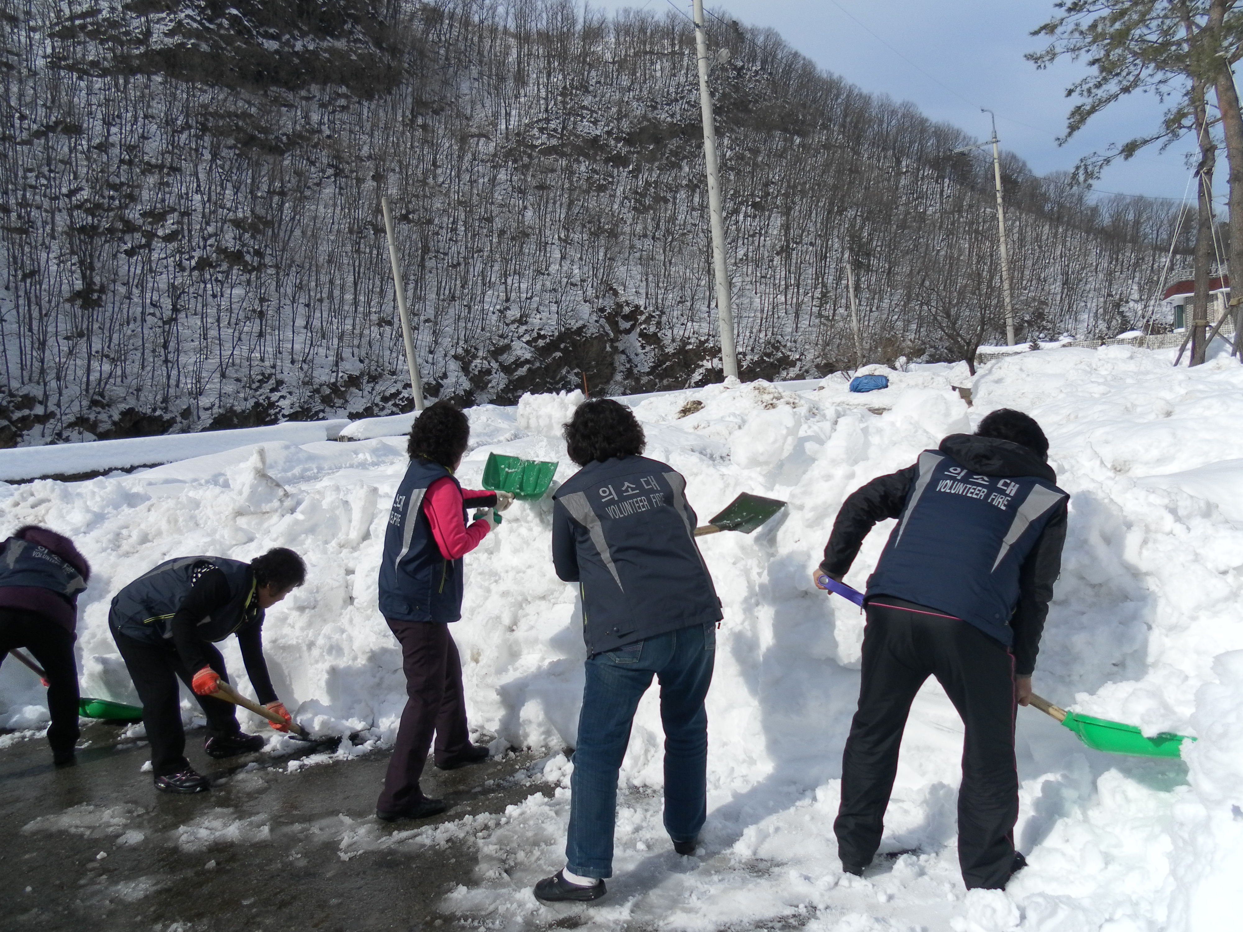 2월16일 대원 16명은 미로면 소재지 일대를 제설작업 하였습니다.