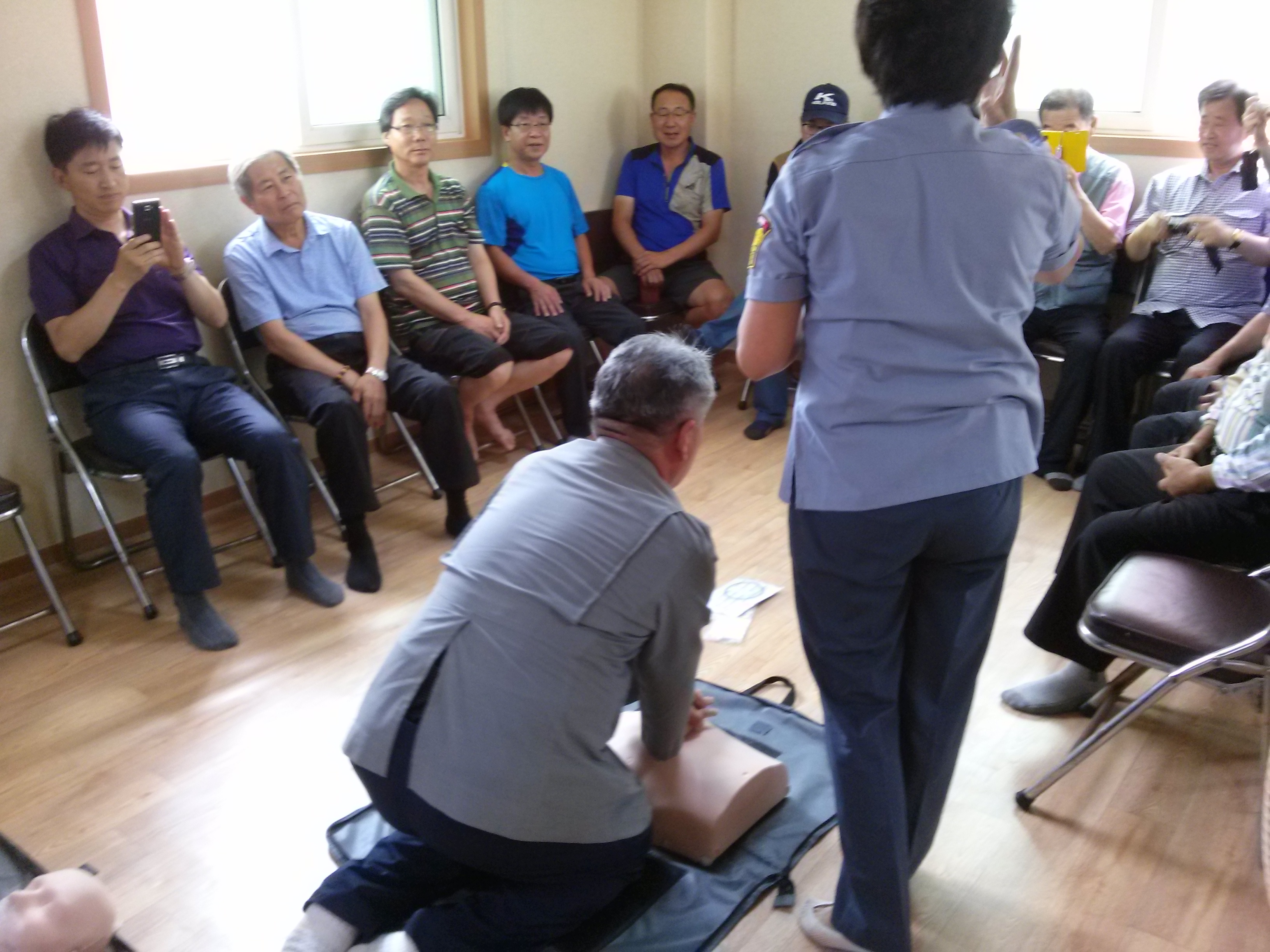 2015. 8. 19 남양동 동화3차 아파트 경로당에서 어르신들과 주민들대상으로 심페소생술 교육