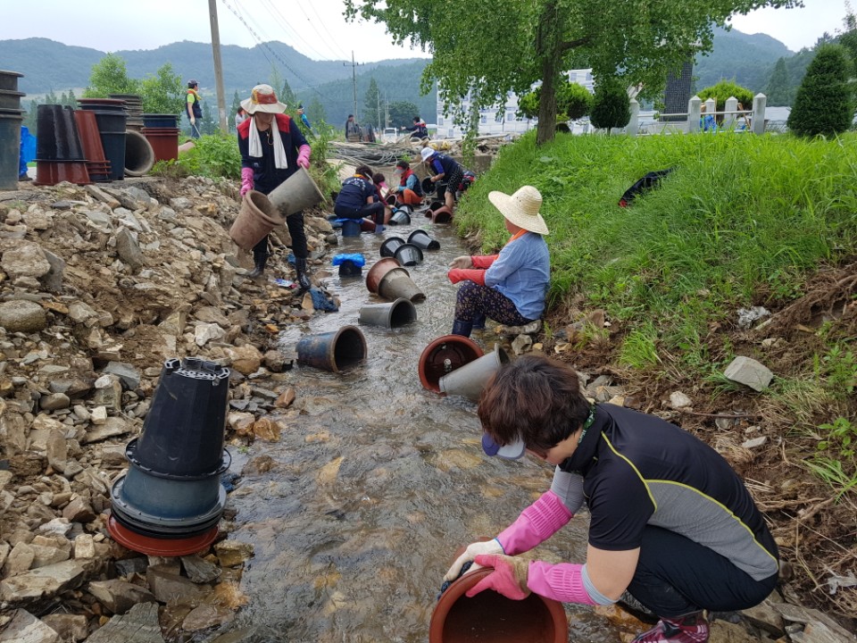 2017년 7월28일 06 :00 ~ 23:30 청주시 낭성면 수해농장에 토사제거, 토사묻은화분씻기, 옥수수대 제거를 하고 돌아왔습니다.