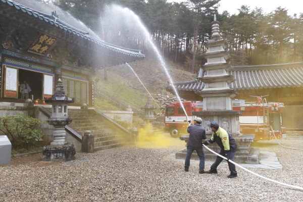 훈련 담당자는 “소화기 위치 및 사용요령 숙지, 소방엔진펌프 주기적 작동점검 등을 통해 유사시 관계자의 신속한 초기대응이 중요하다”며 “유관기관 협업을 통해 전통사찰 화재예방에 최선을 다하겠다”고 밝혔다.