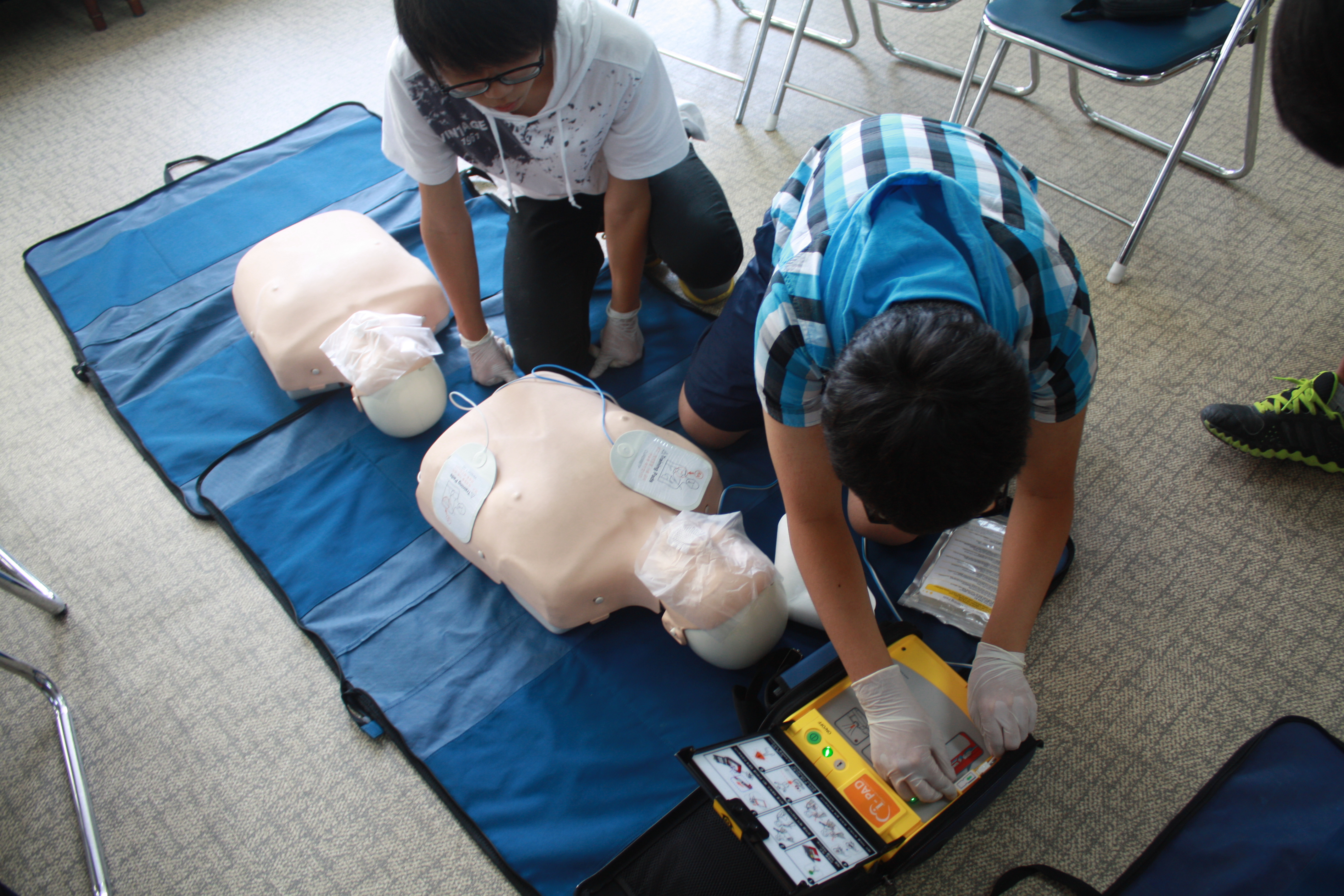 주말119안전체험 아카데미 교육일정은 오전에는 심폐소생술교육 2시간 후, 중식시간을 갖고 오후에는 물놀이 안전교육 영상시청과 농연장체험, 방수체험으로 진행되었다.