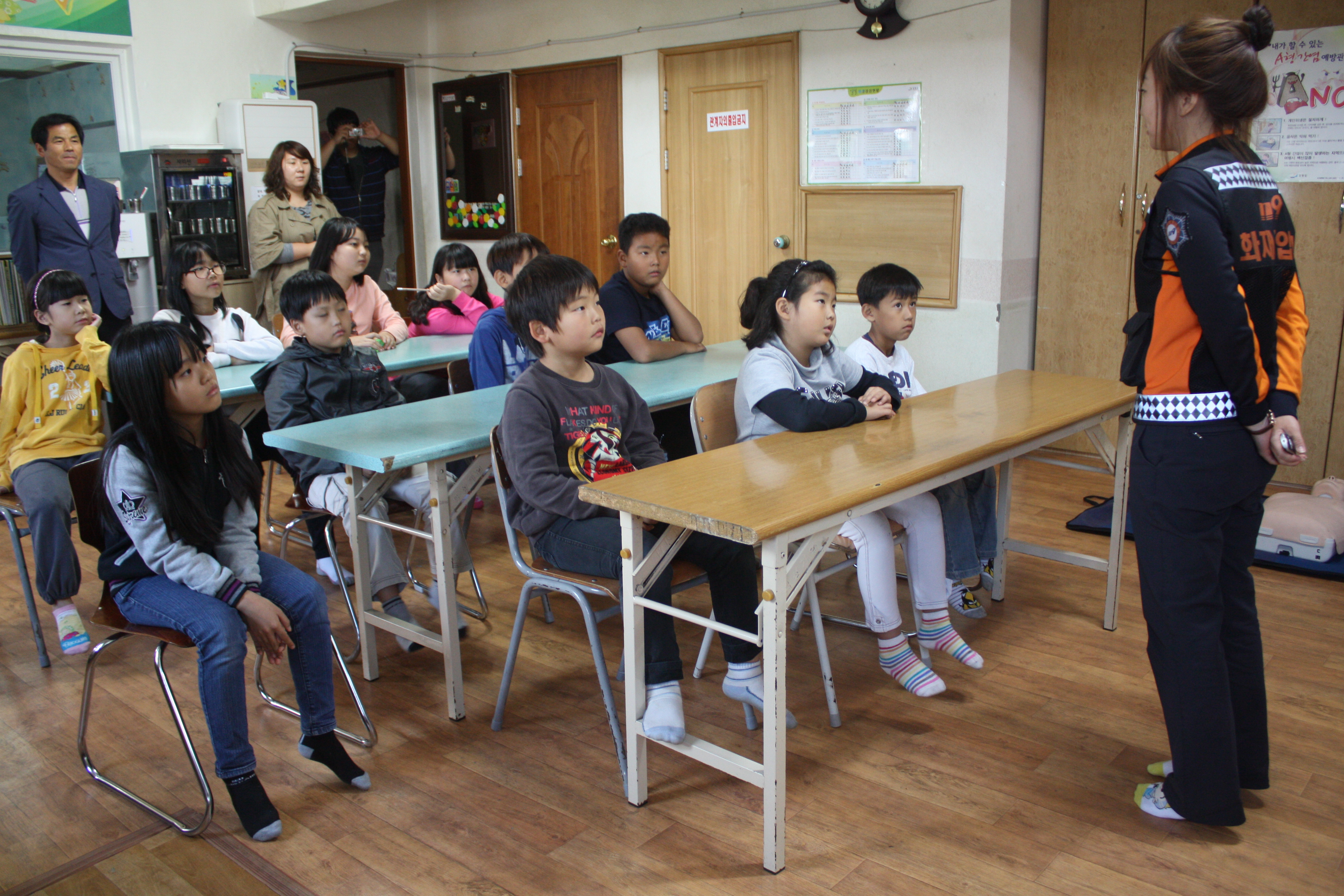 △ 삼척소방서 (서장 이지만)는 오후 16시부터 삼척지역아동센터를 방문하여 초등학생 16명을 대상으로 화재안전교육을 실시하였다. 이날 교육으로는 소방서에서 하는 일, 화재의 원인 및 화재발생시 대피요령, 소화기 사용법, CPR 교육 등을 실시하였다.