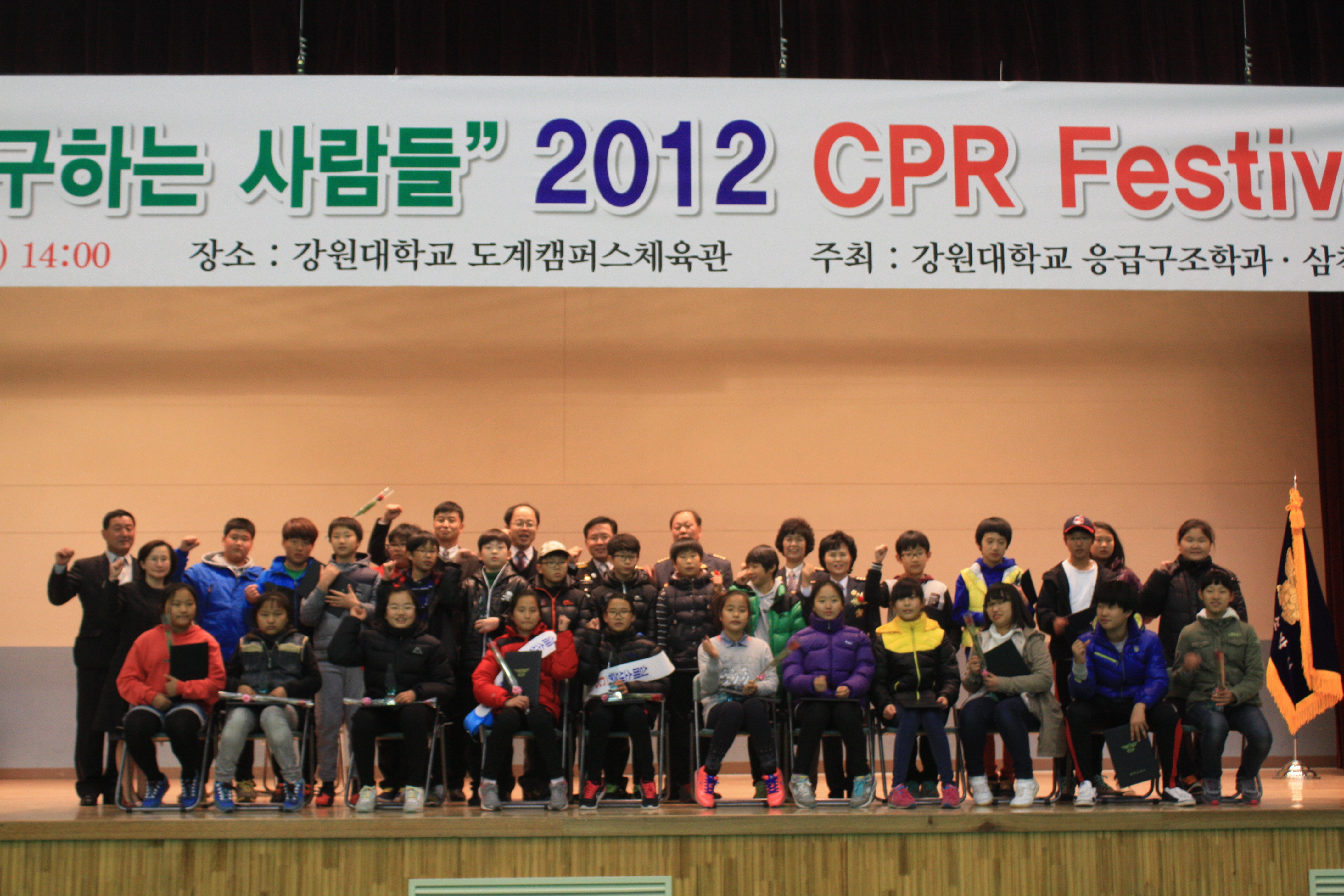 2012년 11월 26일(월) 14시부터 강원대학교 도계캠퍼스 대강당에서 생명을 구하는 사람들 프로젝트 일환으로『CPR 페스티벌 및 2012년 초등학생 심폐소생술 경연대회』를 개최했다.