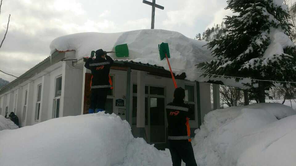 지붕 제설 작업을 실시하고, 마읍 교회 지붕에 쌓인 눈으로 하중을 견디기 어렵다는 신고로