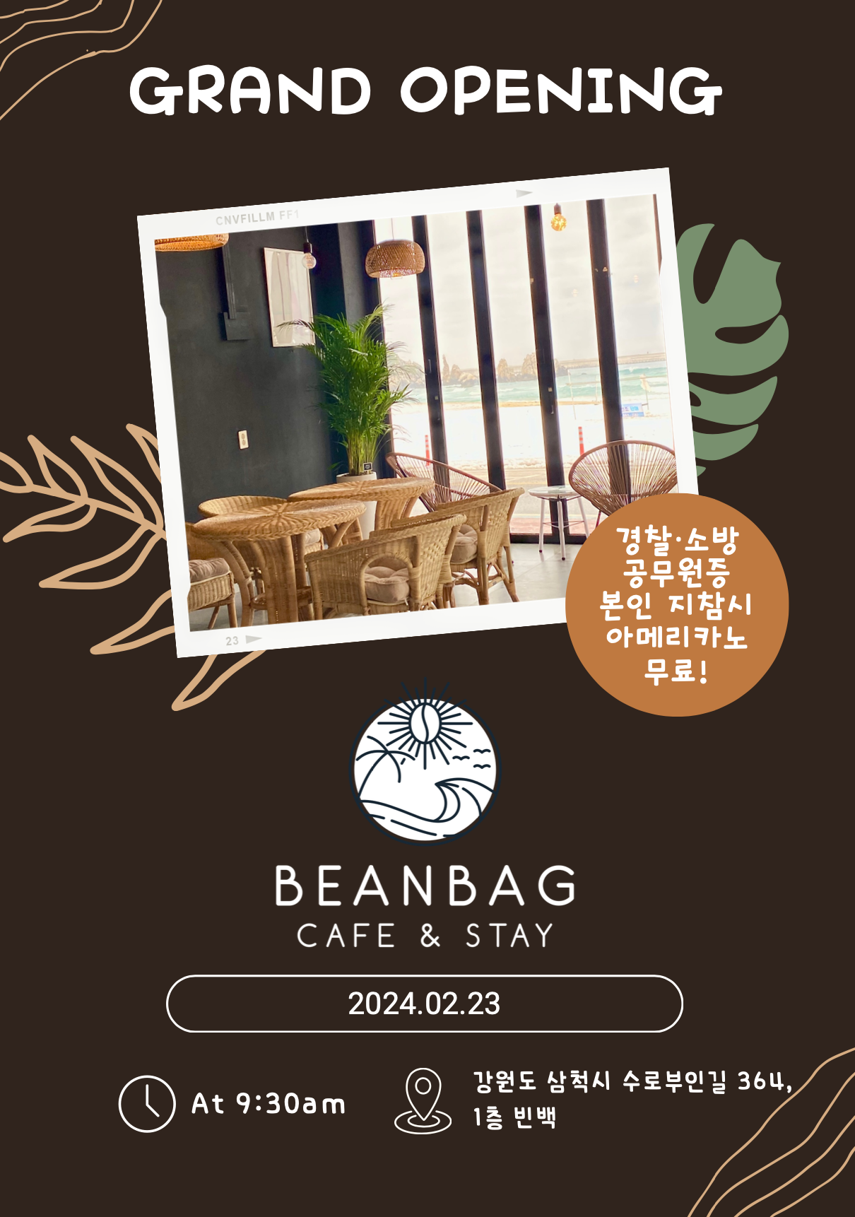 저희 카페에서 경찰관,소방관 공무원증 지참시에 아메리카노를 무료로 드리고 있어요.