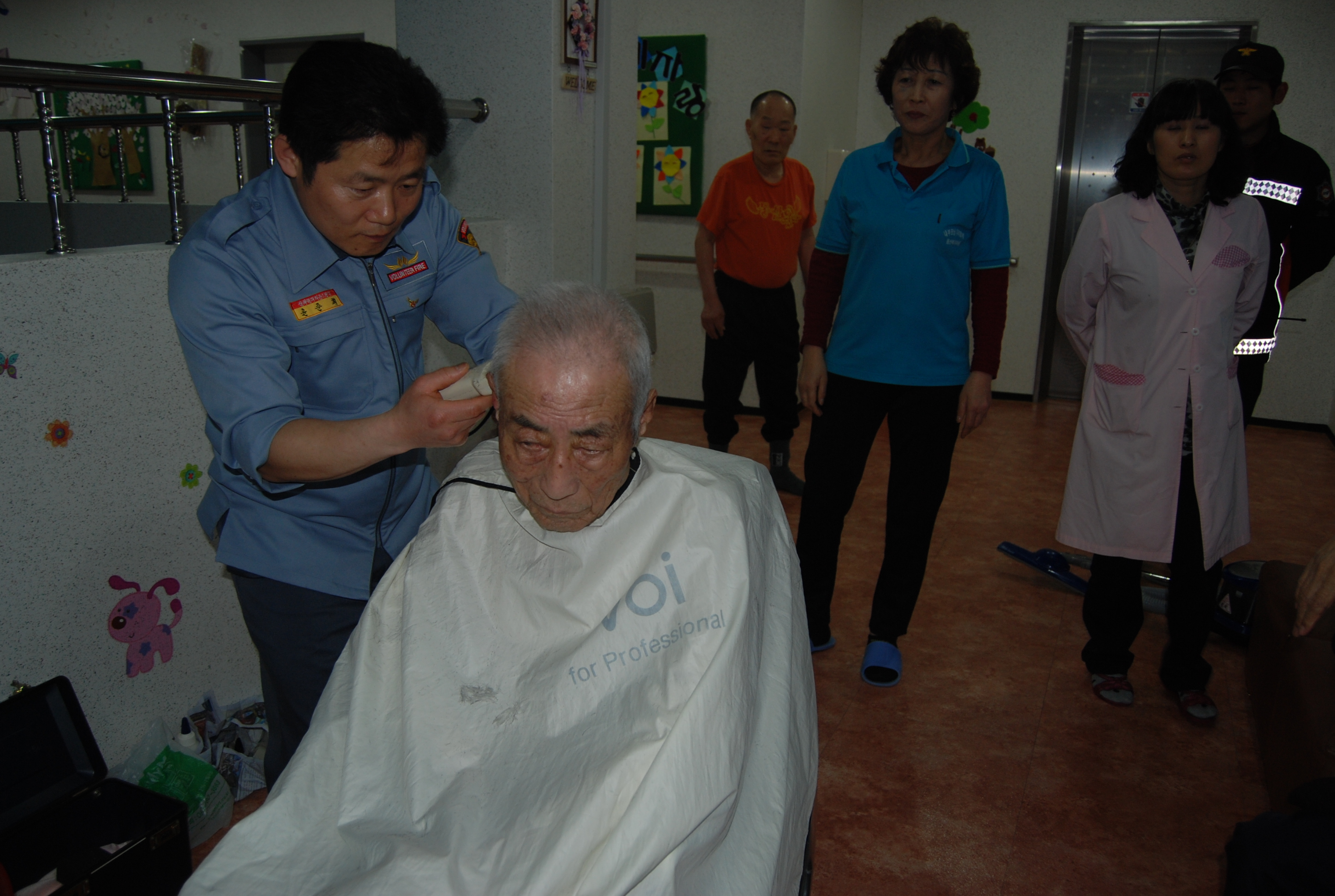 다름이 아니라 지난 3월 26일 저희 시설에서 입소해 계신 어르신을 위해 미용 봉사를 오셨던 원덕 의용소방대 황선 대장님을 비롯한 모든 분께 늦었지만 감사 인사를 드립니다.