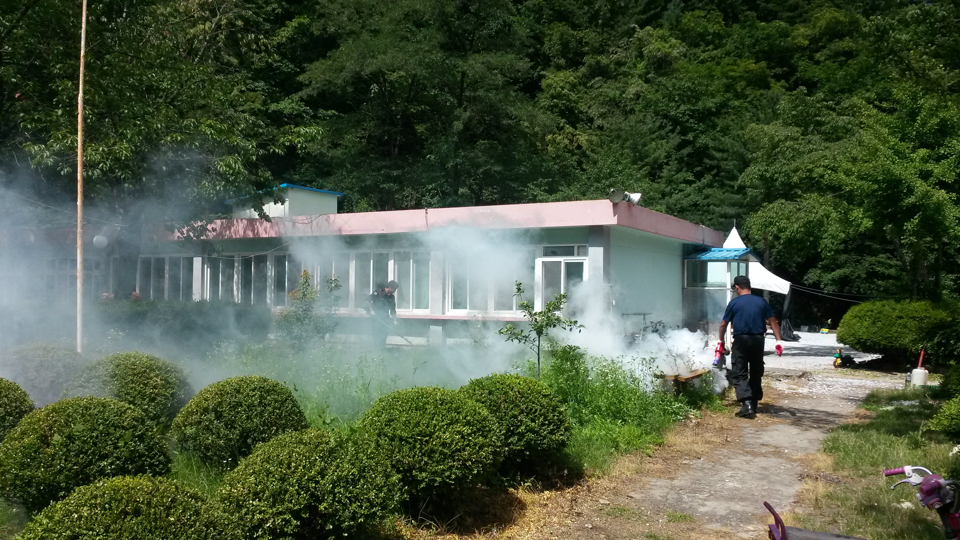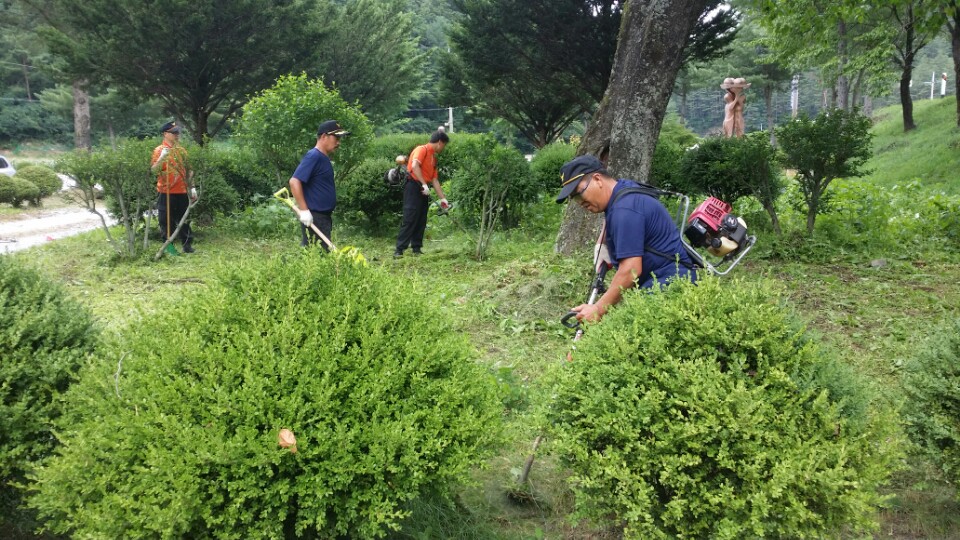 삼척소방서 의용소방 119특별기동대 대장 이천우외 13명대원은 2015년 7월18일(토) 삼척시 하장면 벌문재로 1009번지 (구토산분교)내 나무심는지역아동센터에 나무와 잔디와 운동장내에 풀밭과 개울을 따라 하얀 연기를 품으며 소독방역을 하여 주었고, 예치기 여러대를 이용하여 잔디(화단) 제초작업을 하여 센터내 환경을 아름답고 안전하고 만들어 주었습니다. 그리고 창고 및 운동장 곳곳에 청소까지 더운날씨에도 불구하고 대원들의 환한 미소와 땀을 흘리며 봉사하는 모습을 보며 감사하는 마음으로 칭찬글을 올립니다.