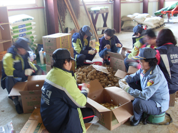 강현여성의용소방대 농촌일손돕기 - 감자 씨눈 작업 돕기