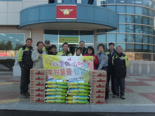 설을맞아 속초의용소방대에서는 어려운 다문화가족에게 쌀과라면등 물품지원행사를 실시하였다 이날 다문화가족지원쎈타에서 4가정을 추천받아 2월1일날 속초소방서입구에서 실시하였다