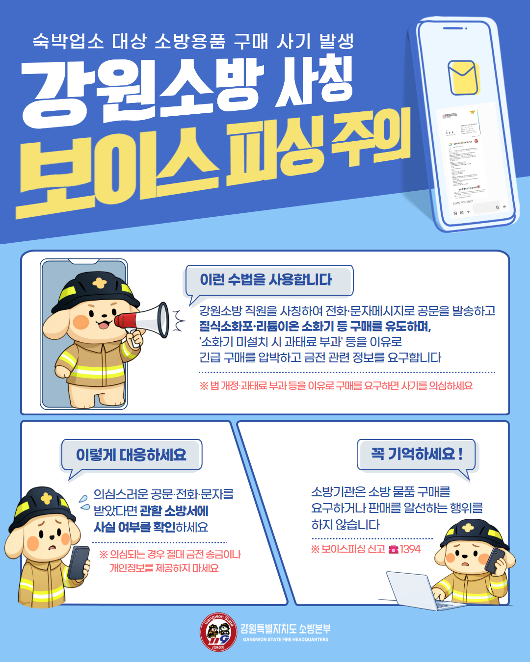 강원소방 사칭 보이스 피싱 주의