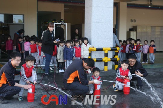 속초소방서(서장 최민철)는 10일 오전 10시 30분부터 본서 3층 대회의실에서 속초 반비니어린이집 아동 70명을 대상으로 연기탈출체험 및 화재발생 시 대피요령, 물소화기체험 등 소방안전체험교실을 운영했다.