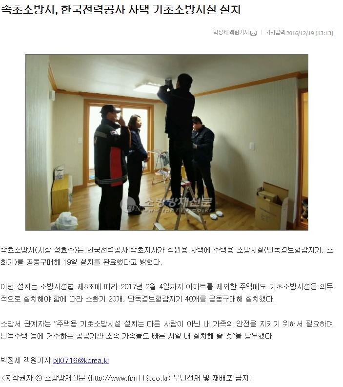 161219_방재신문,뉴스모아,엔사이드_한국전력공사_사택_기초소방시설_설치.JPEG
