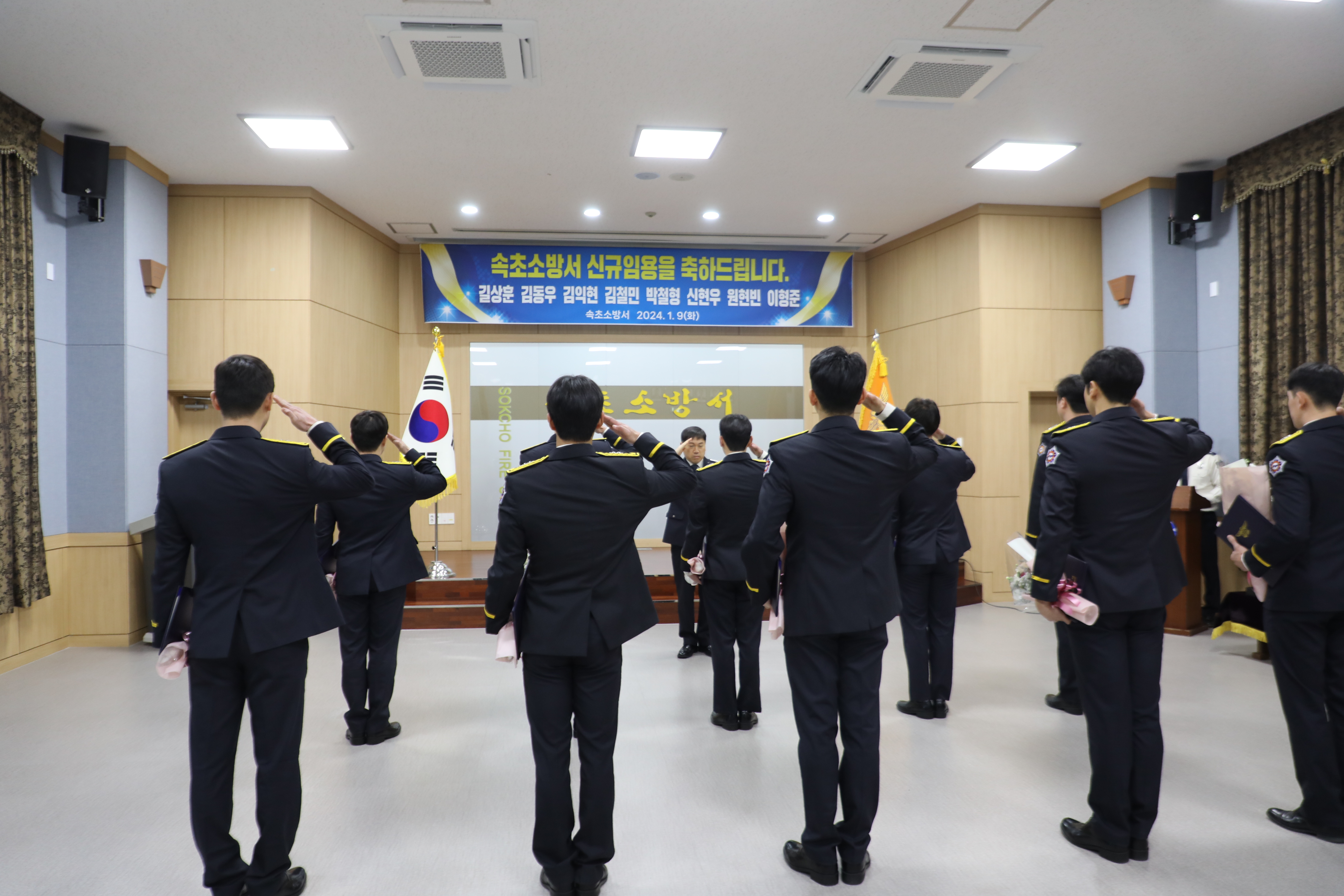 속초소방서(서장 김재석)는 9일 속초소방서 3층 대회의실에서 신규 소방공무원 8명에 대한 임용장 수여식을 실시하였다.