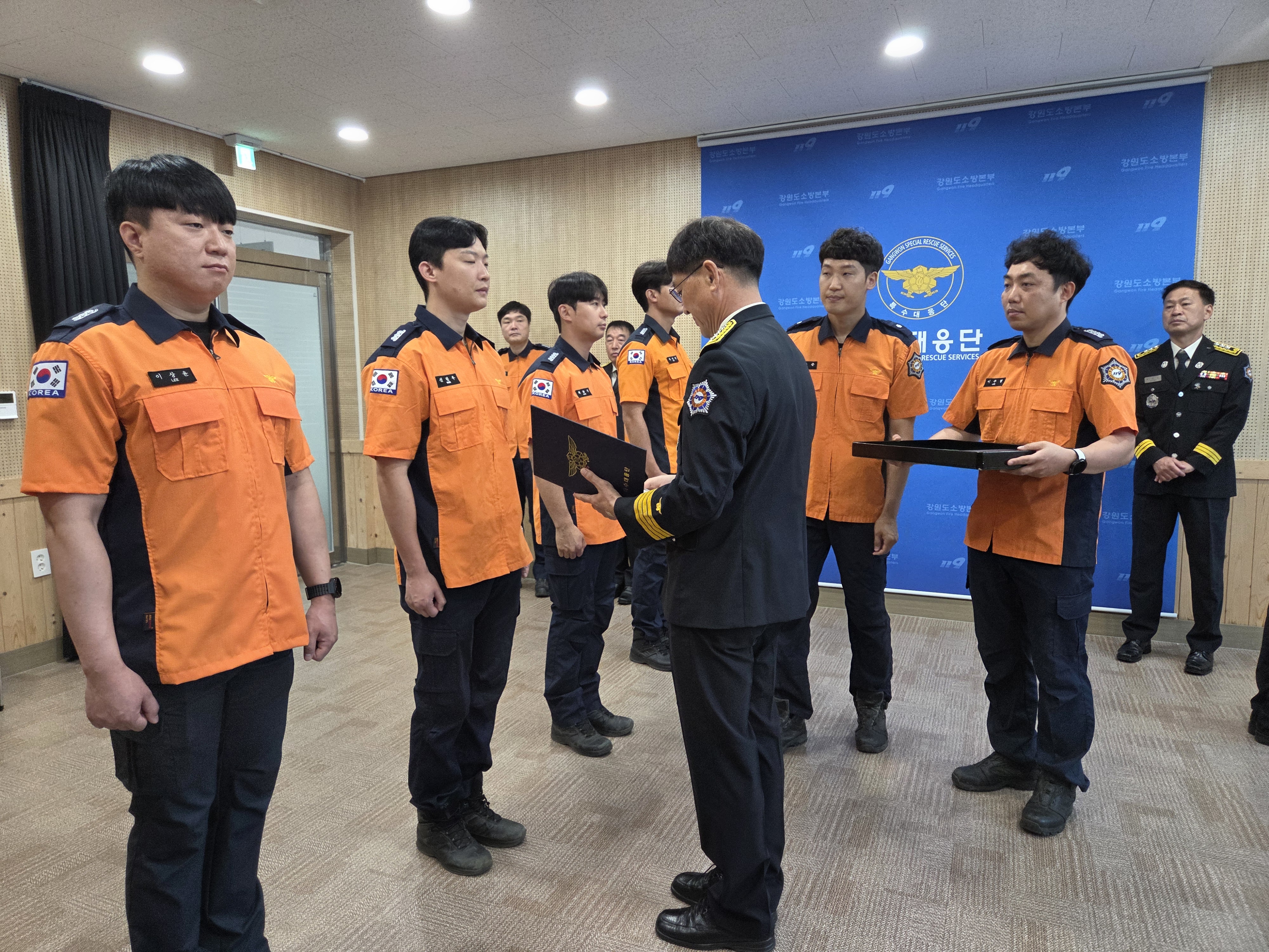 인사 발령 사항으로는 승진자(소방교 정인호) 1명, 전입자 8명(소방경 임현탁 외 8명)으로 특수대응단 각 부서에 배치되었습니다.