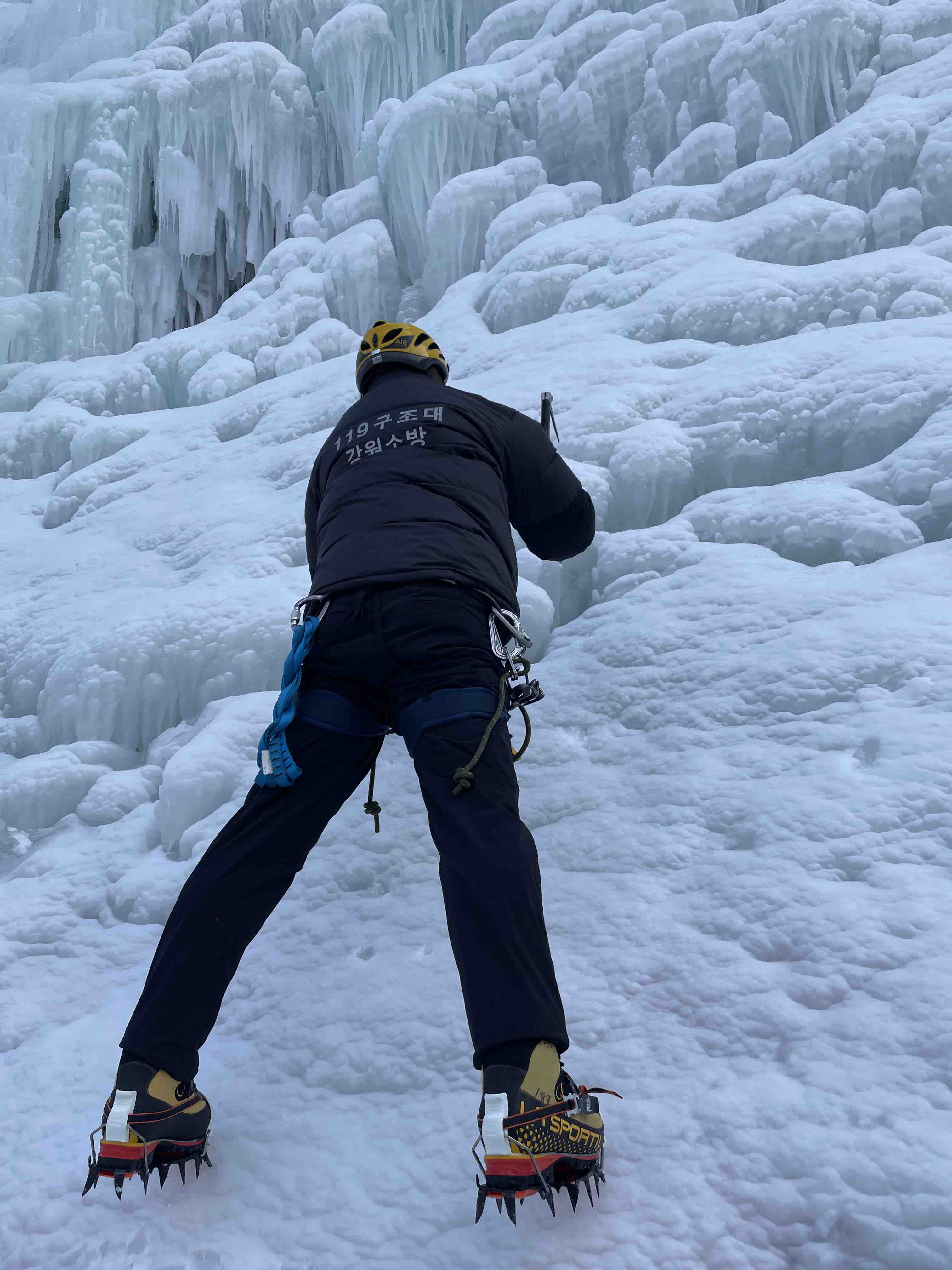 강원119특수대응단, 빙벽 위 추락사고 대비 고난도 구조 훈련 전개