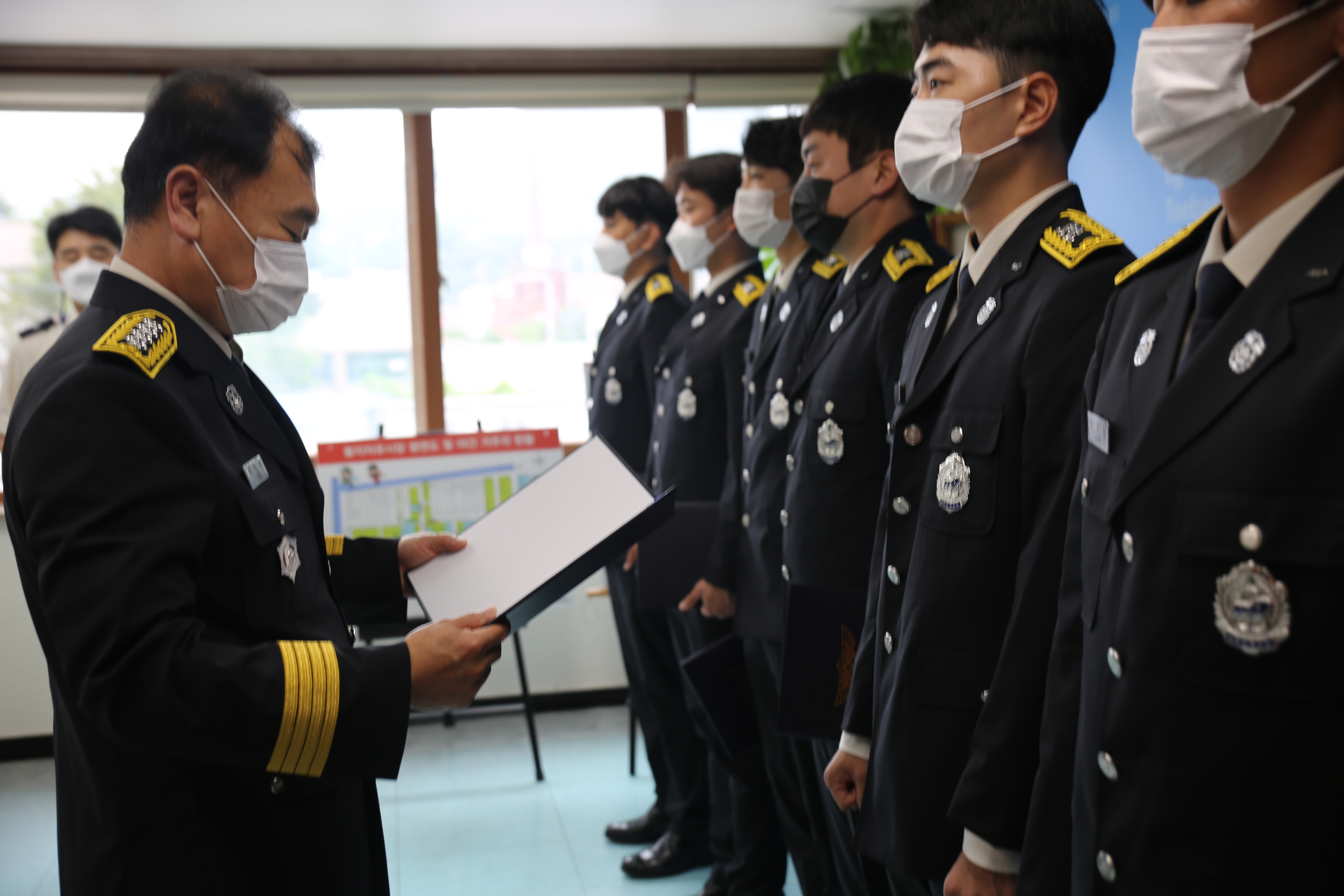 □ 최식봉 서장은 “오늘은 시민의 생명과 재산을 보호하는 소방공무원으로서 첫발을 내딛는 출발점이다.”며“초심을 잃지 말고 소방관으로서 사명감과 자부심을 갖고 안전지킴이로서의 역할을 다해주길 바란다.”고 말했다.