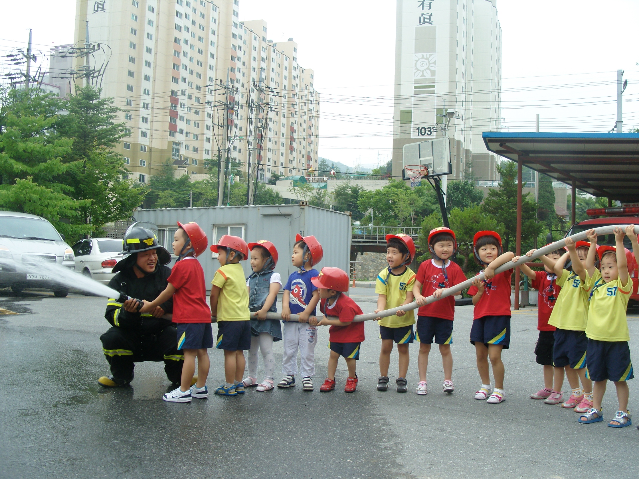 중앙유치원 어린이들과 교사들이 6월 30일(수) 태백소방서를 방문하여 견학을 통해 소방안전 체험 기회를 가졌다. 어린이들은 화재시 ‘불이야!’라고 크게 외치며 대피하는 훈련을 포함하여 119전화 체험, 소방차 탑승 등 다양한 경험을 하면서 즐거운 시간을 보냈다.