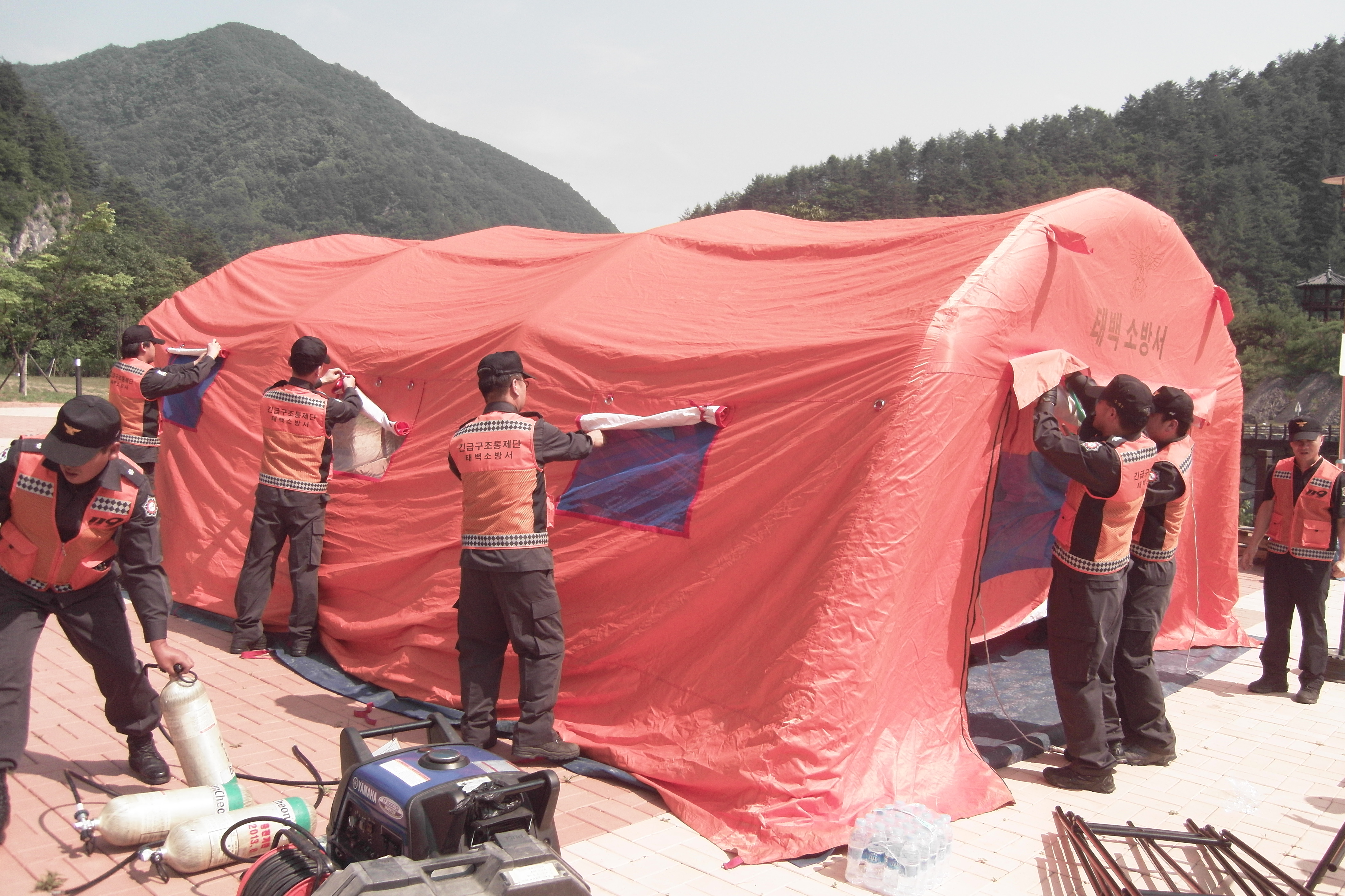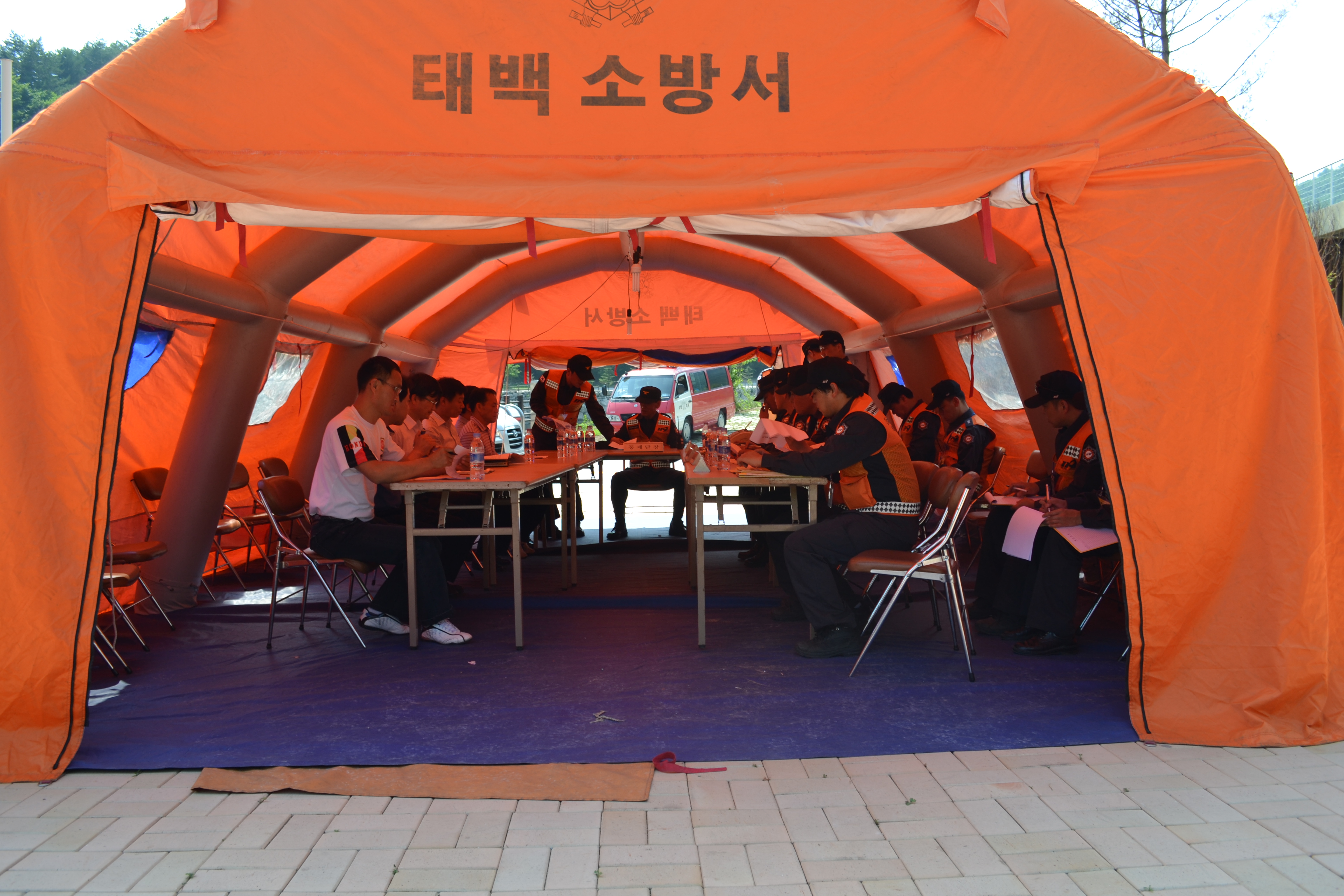 태백소방서(서장 여윤길)는 06월 29일(목) 14:00시 동정동 소재“태백고생대자연사박물관"에서 대형재난에 대비, 긴급구조통제단 불시 가동훈련을 실시했다. 긴급구조통제단 휘하에 총괄지휘소, 대응계획부, 자원지원부, 현장지휘대, 긴급복구부등 기능별 대응 체계 훈련을 실시했다.
