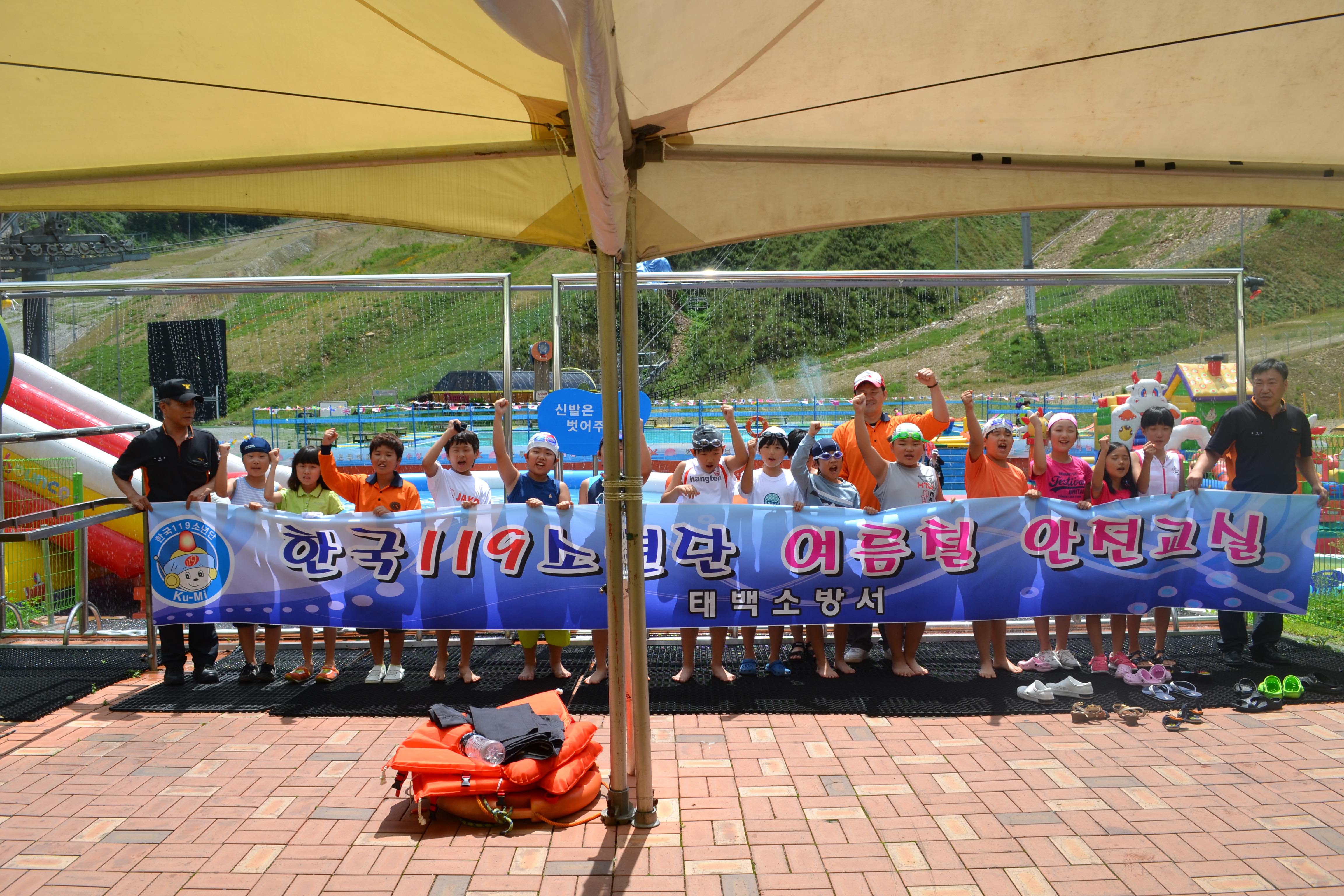 태백소방서(서장 김진봉)는 17(금) 오전 10시부터 소방서 및 오투리조트 야외수영장에서 관내 한국119소년단 27명 및 지도교사 1명이 참가한 가운데 「한국119소년단 여름철 119안전교실」을 운영 했다