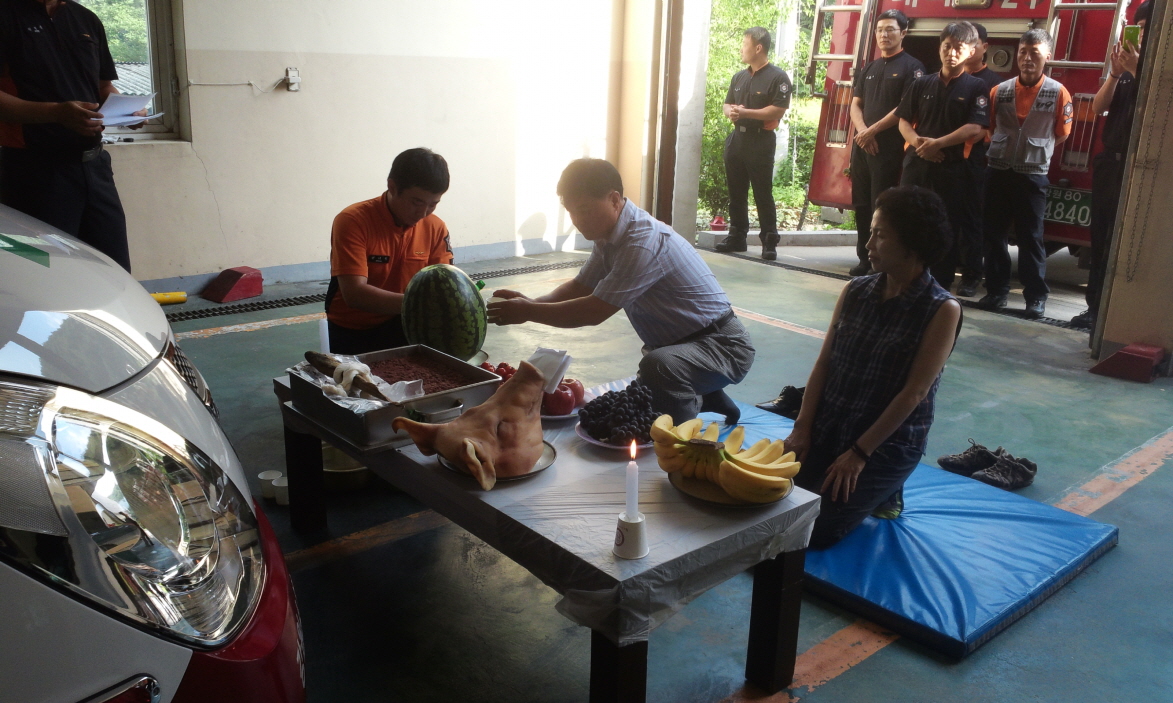 신형구급차 무사기원을 바라는 고사를 지냈습니다.