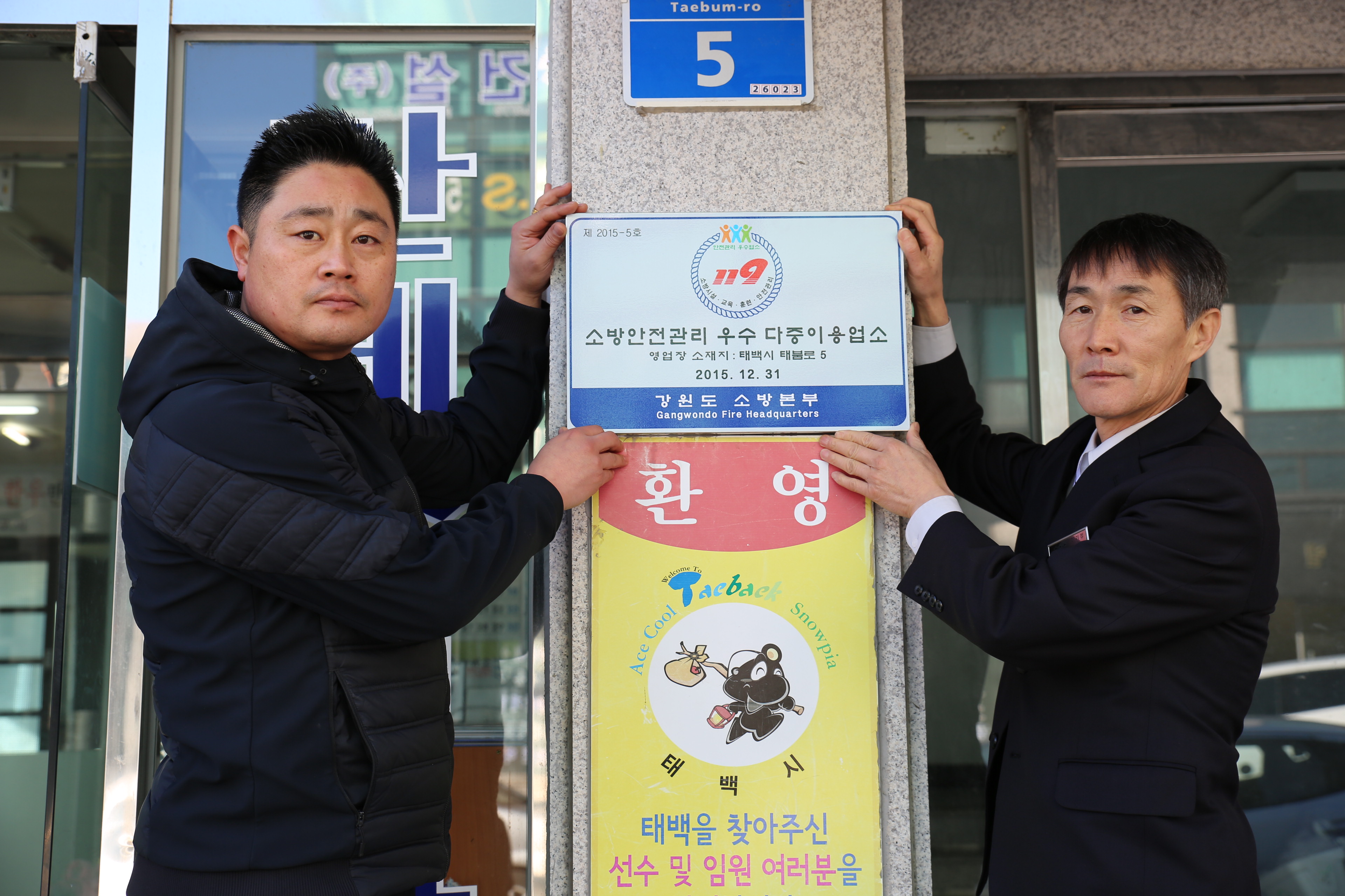 태백소방서는 7일 황지동 대원화로구이에 대하여 다중이용업 안전관리 우수업소 현판식을 가졌다.
