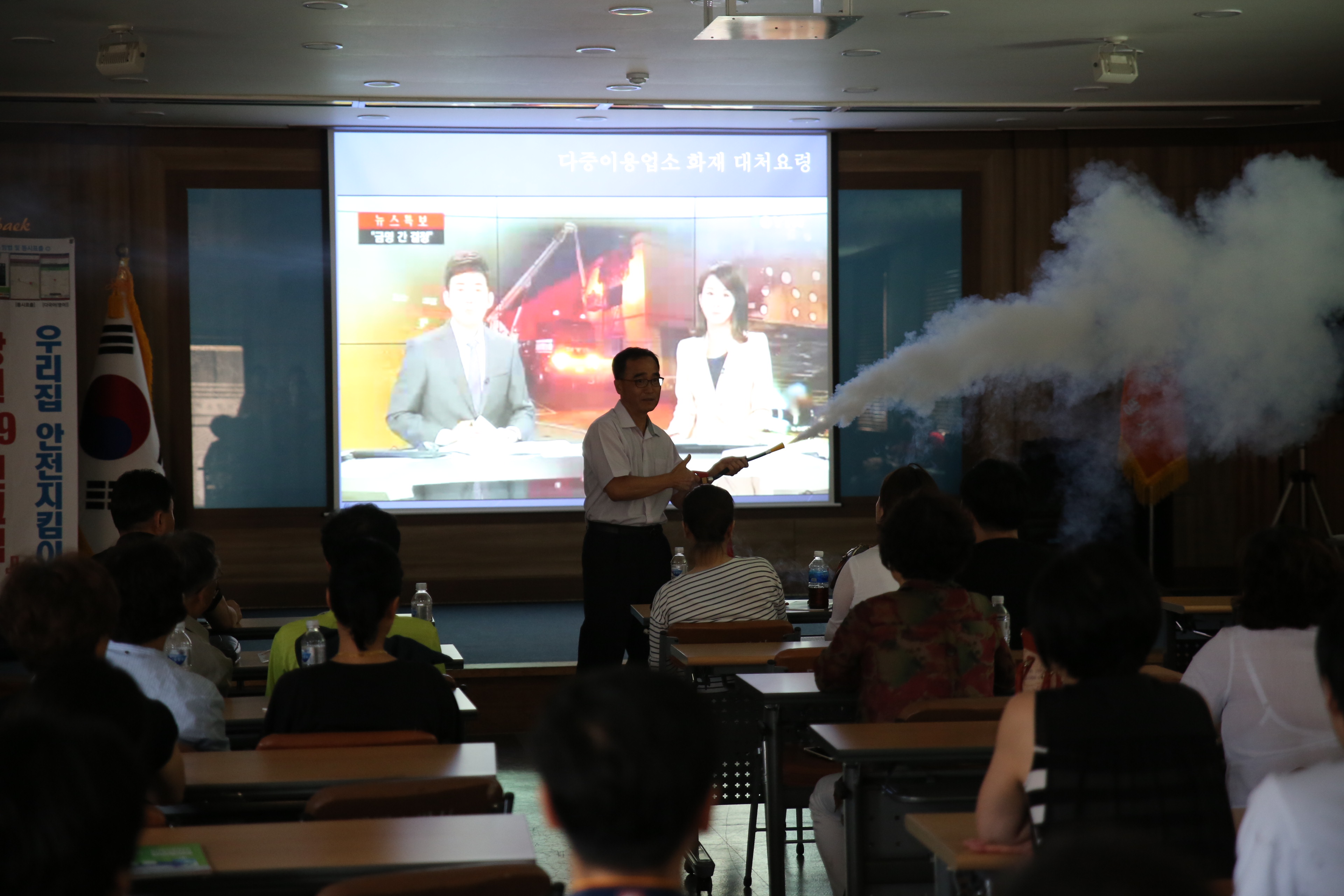 주요 교육내용은 △ 화재안전과 관련된 법령 및 제도 △다중이용업소에서 화재가 발생한 경우 초기대응 및 대피요령 △소방시설 및 방화시설의 유지관리 및 사용방법 △심폐소생술 등 응급처치 요령 △주택용 기초소방시설 설치 의무 홍보 △옥내소화전 방수 및 소화기 사용체험 교육으로 진행되었다.