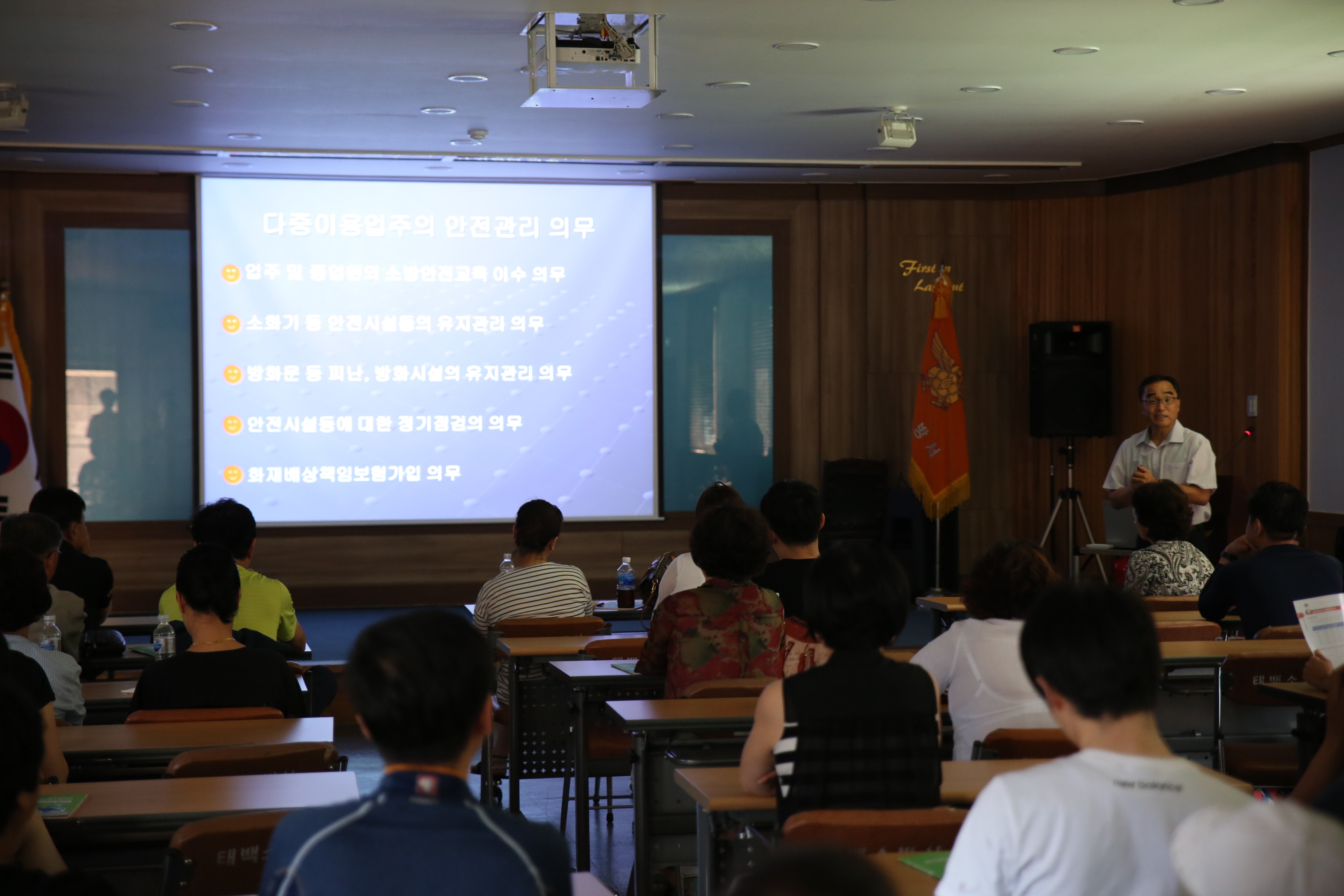 이날 교육은 불특정 다수인이 출입하는 다중이용업소의 소방안전을 확보하고자 “다중이용업소의 안전관리에 관한 특별법 제8조”에 따른 의무교육으로 미참석 관계자는 300만원이하의 과태료가 부과된다.