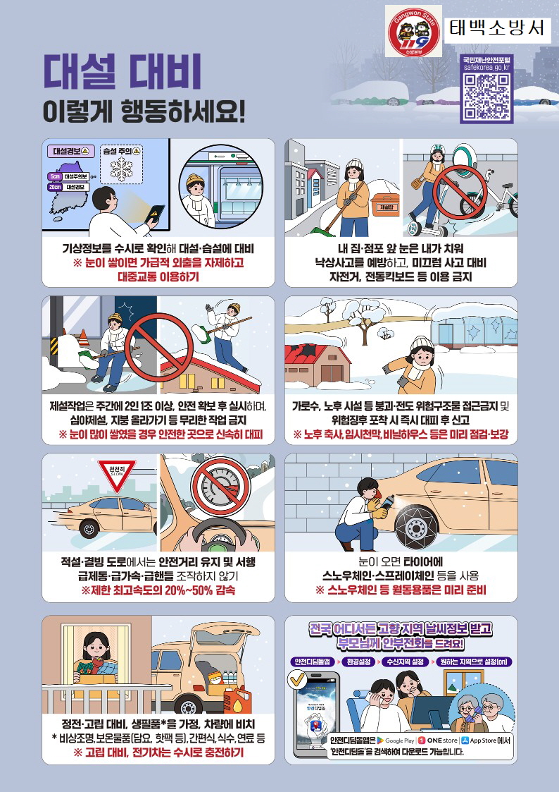 대설 대비, 눈길 안전수칙 꼭 지키고 올겨울도 안전하게 보내세요! #태백소방서 #대설대비 #겨울안전