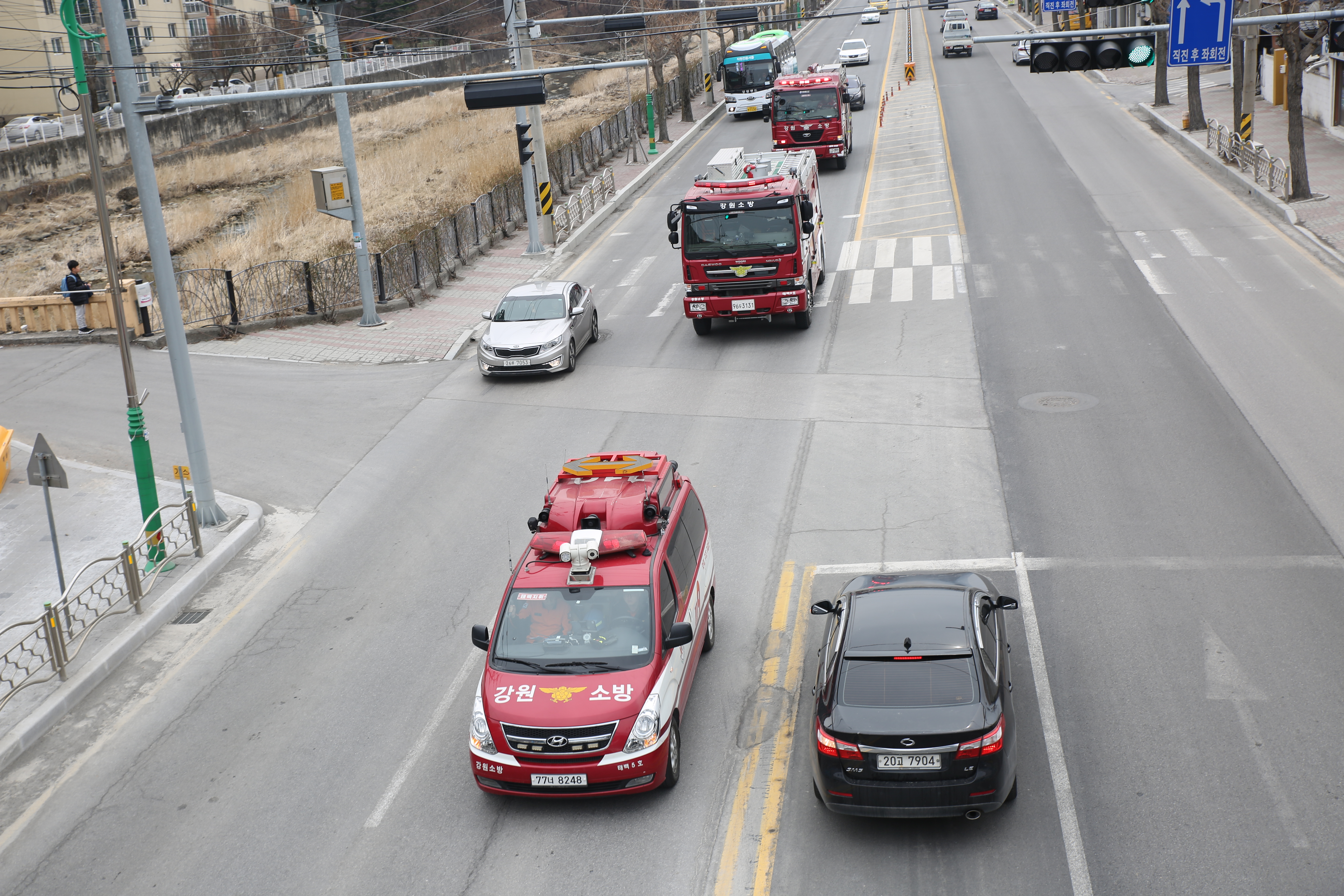 태백소방서, 소방차 길터주기 시민 참여 훈련실시