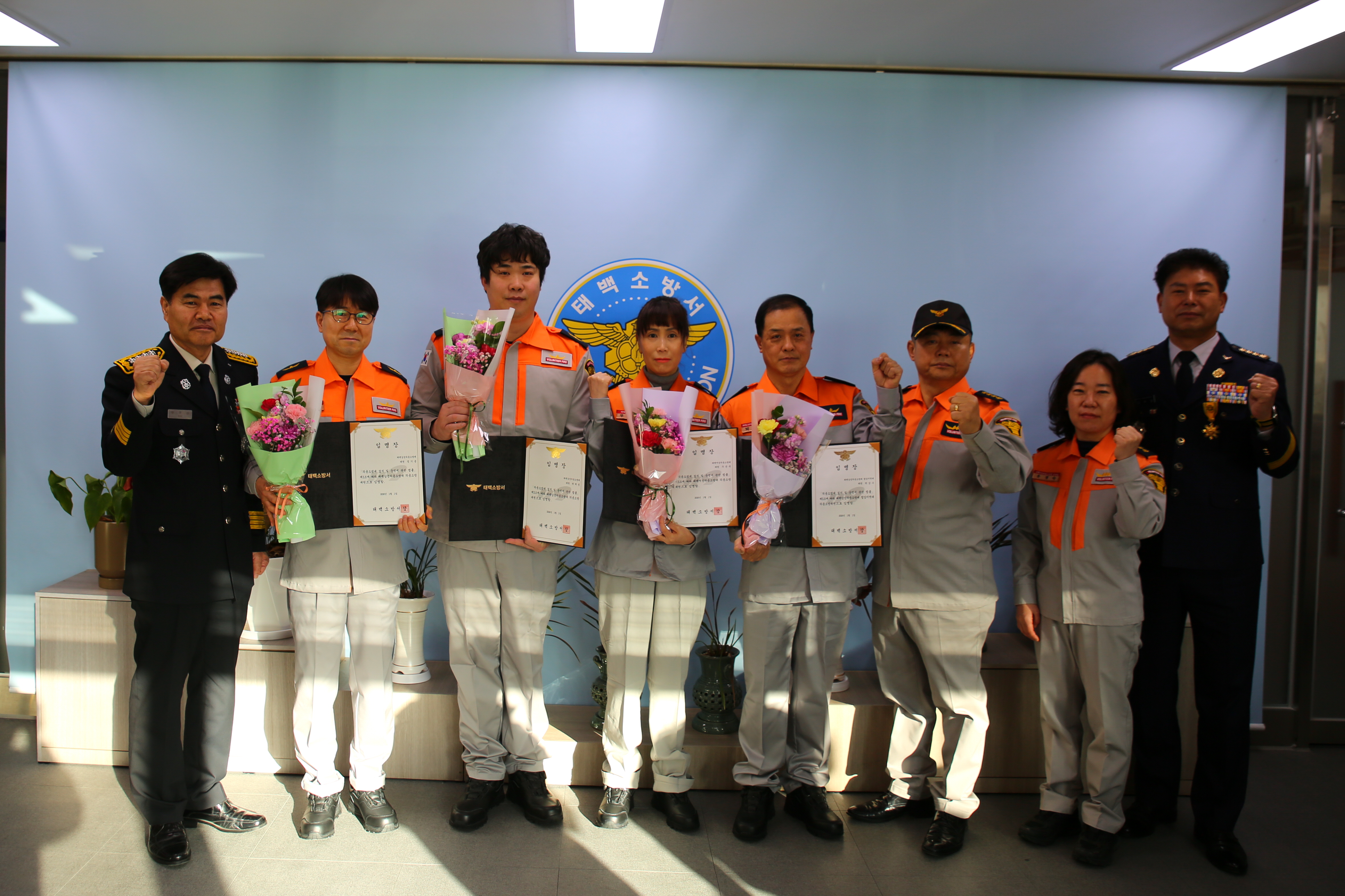 태백소방서(서장 심규삼)는 8일‘2026년 1분기 신규 의용소방대원 임명장