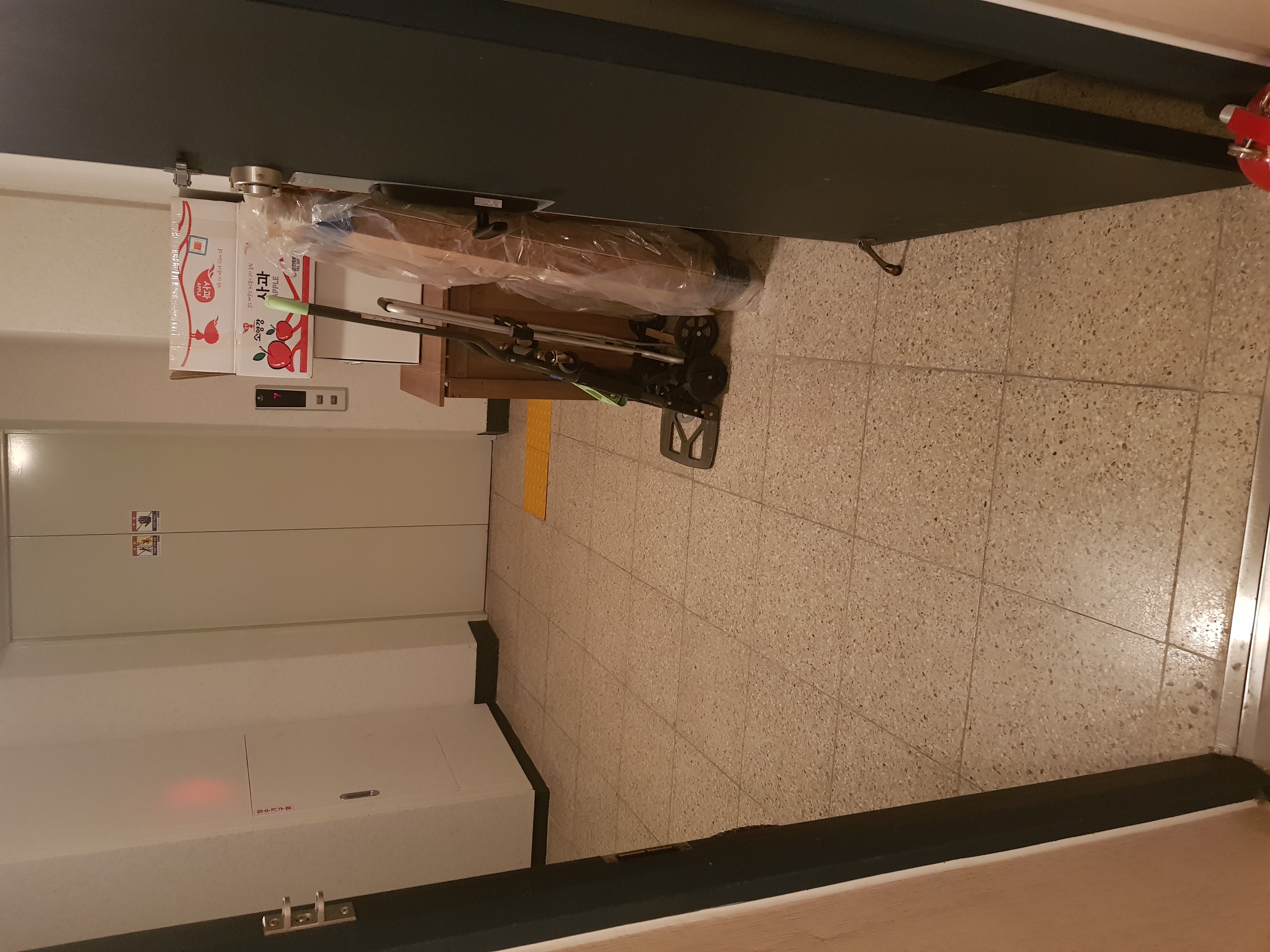 첨부된 사진과 같이 현관앞에서 엘리베이터로 계단으로 이동하는 공간이 확보되어 있으며, 옆집에서 엘리베이터 또는 계단으로 통하는 공간의 폭이 2미터 이상 확보되어 있습니다. 사진 첨부하였습니다.
