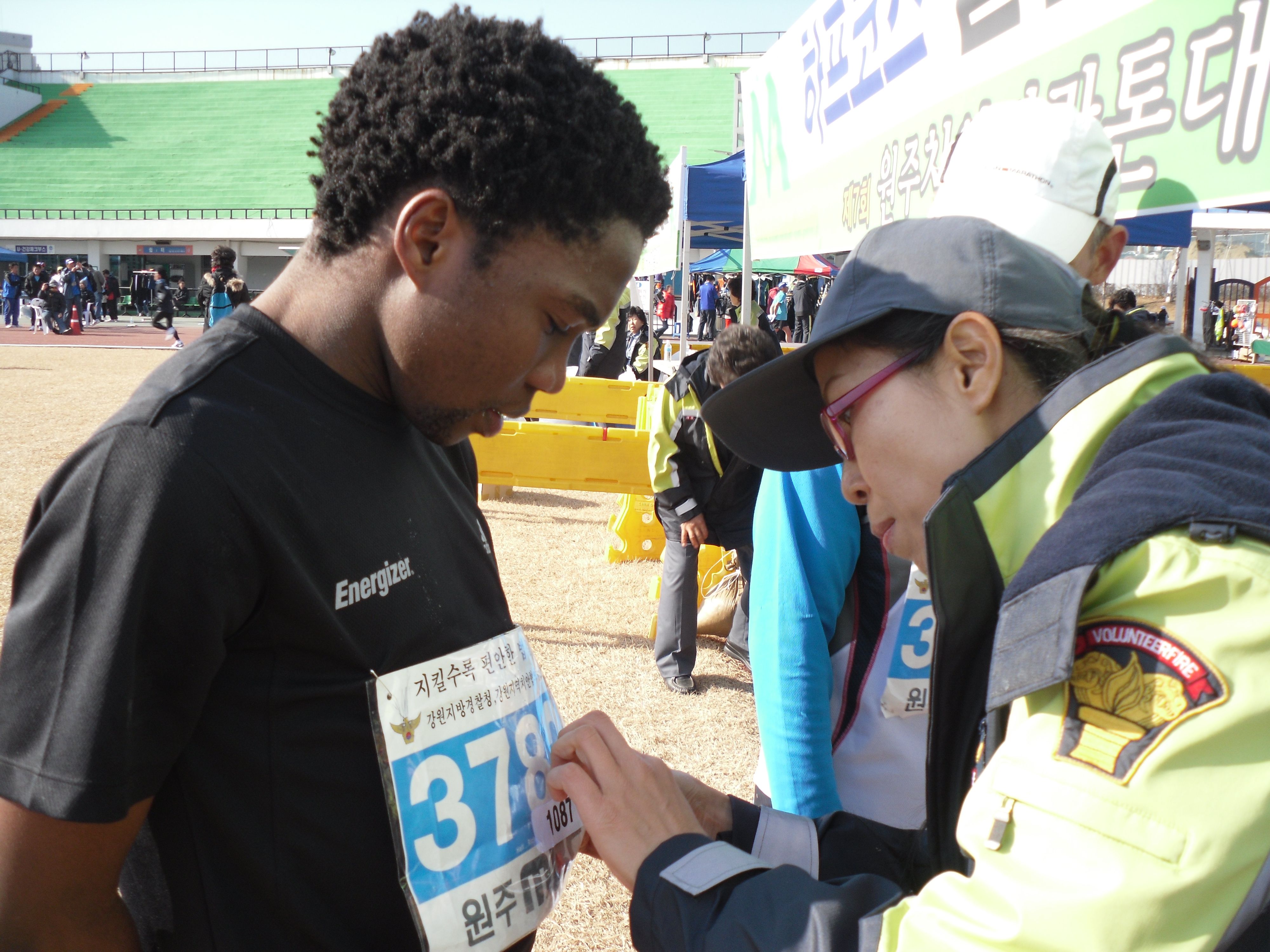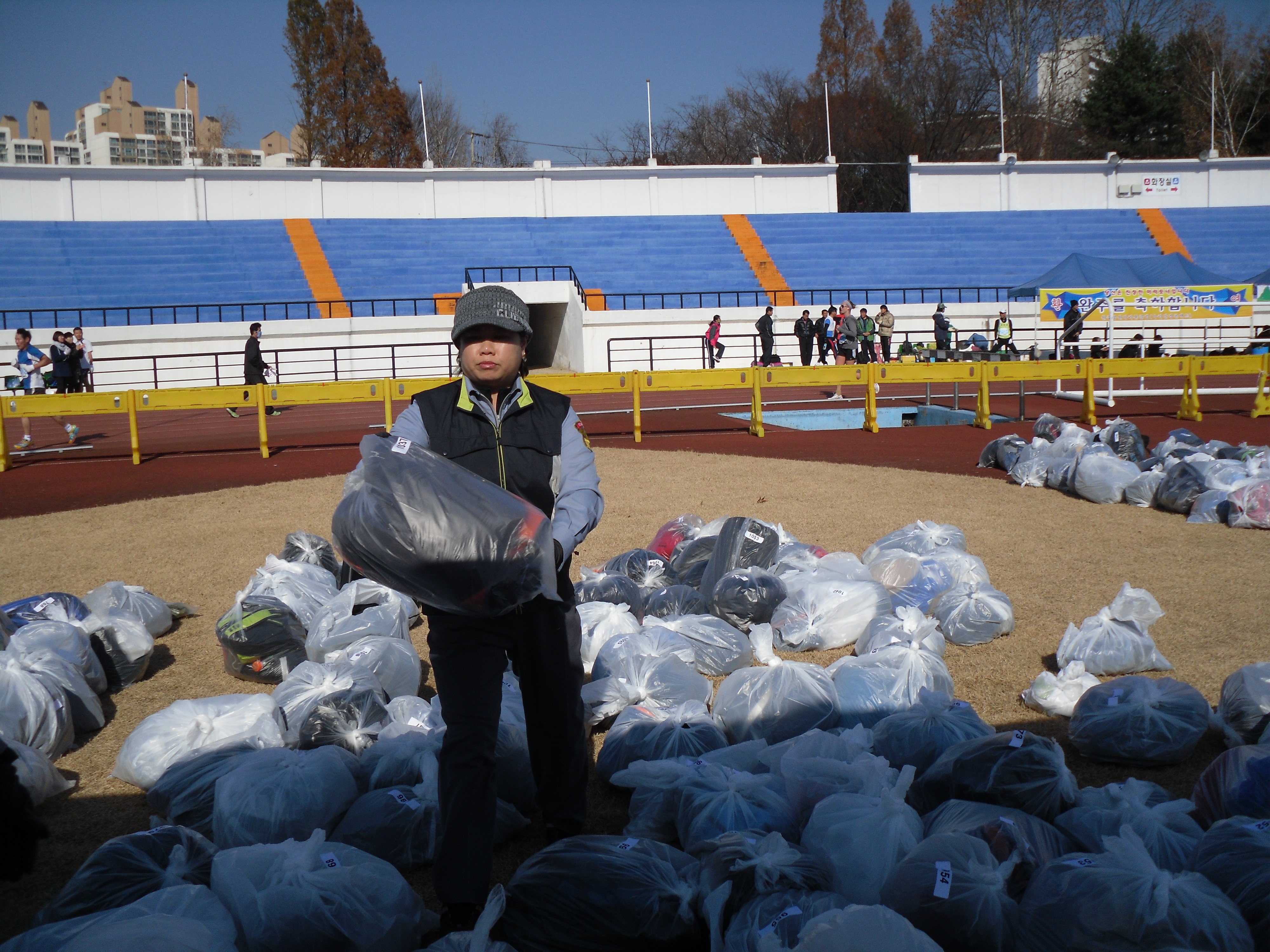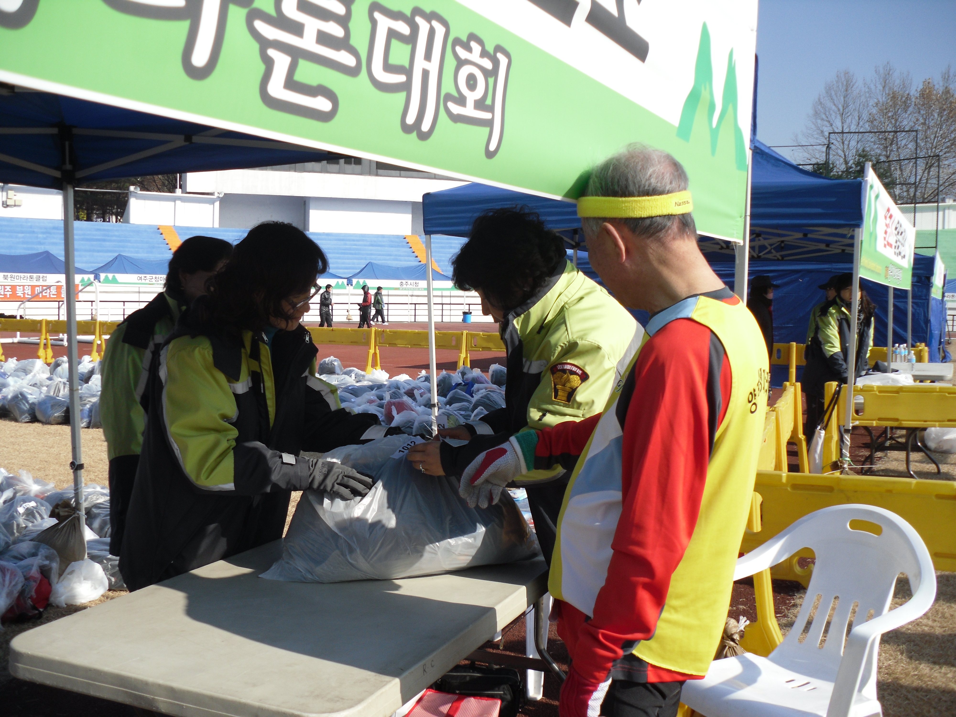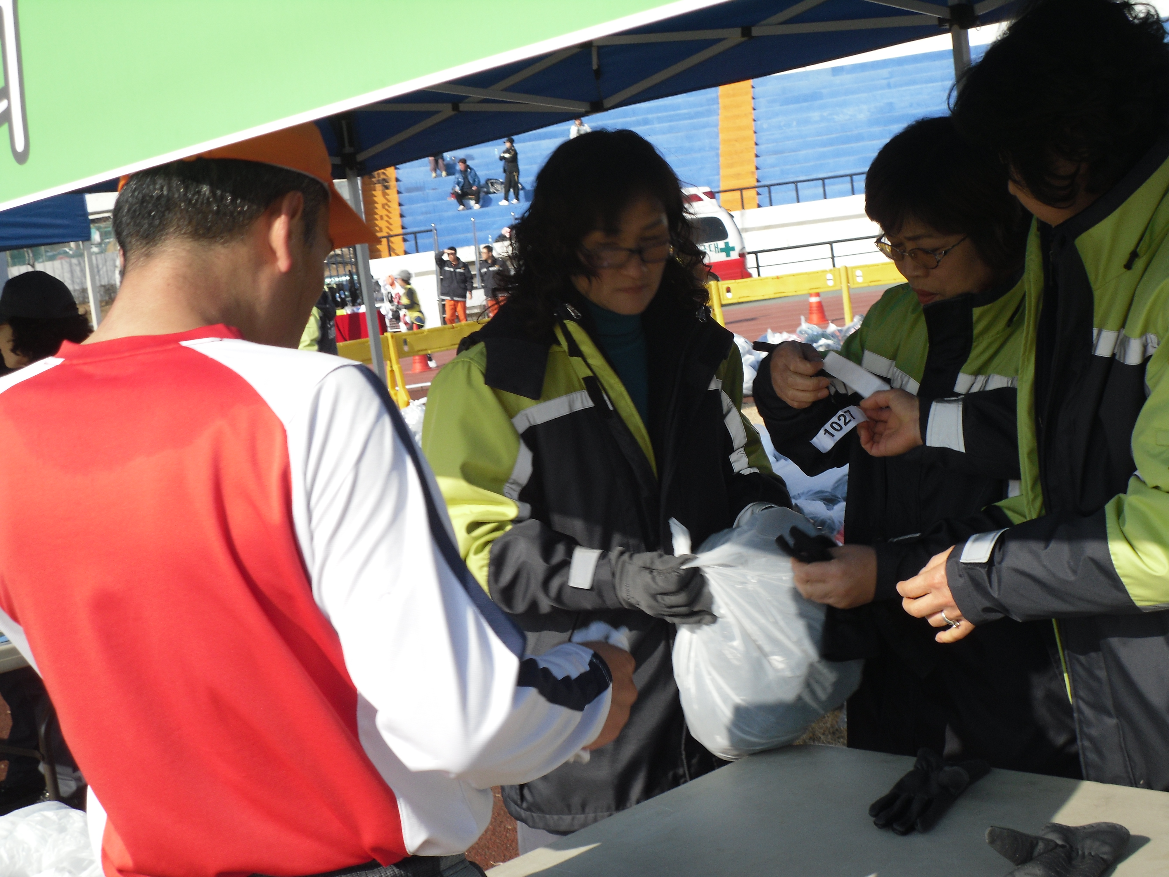 추운 날씨에도 불구하고 이른 아침부터 참가선수들의 편의와 사기진작을 위해 안전하고 빠른 물품보관 및 환한 미소와 함께 행운의 말을 건네는 대원들에게 돌아오는 선수들의 답례는 추위를 한방에 날려버렸답니다. ^.^