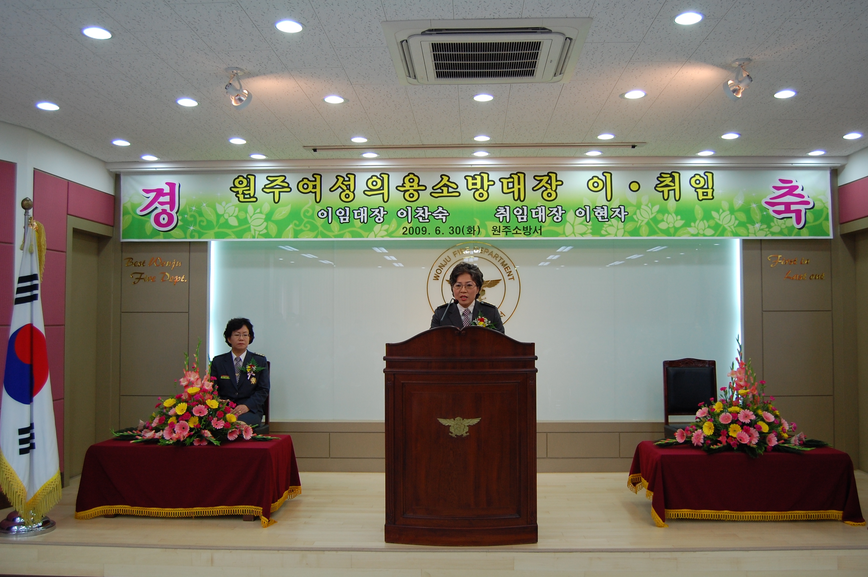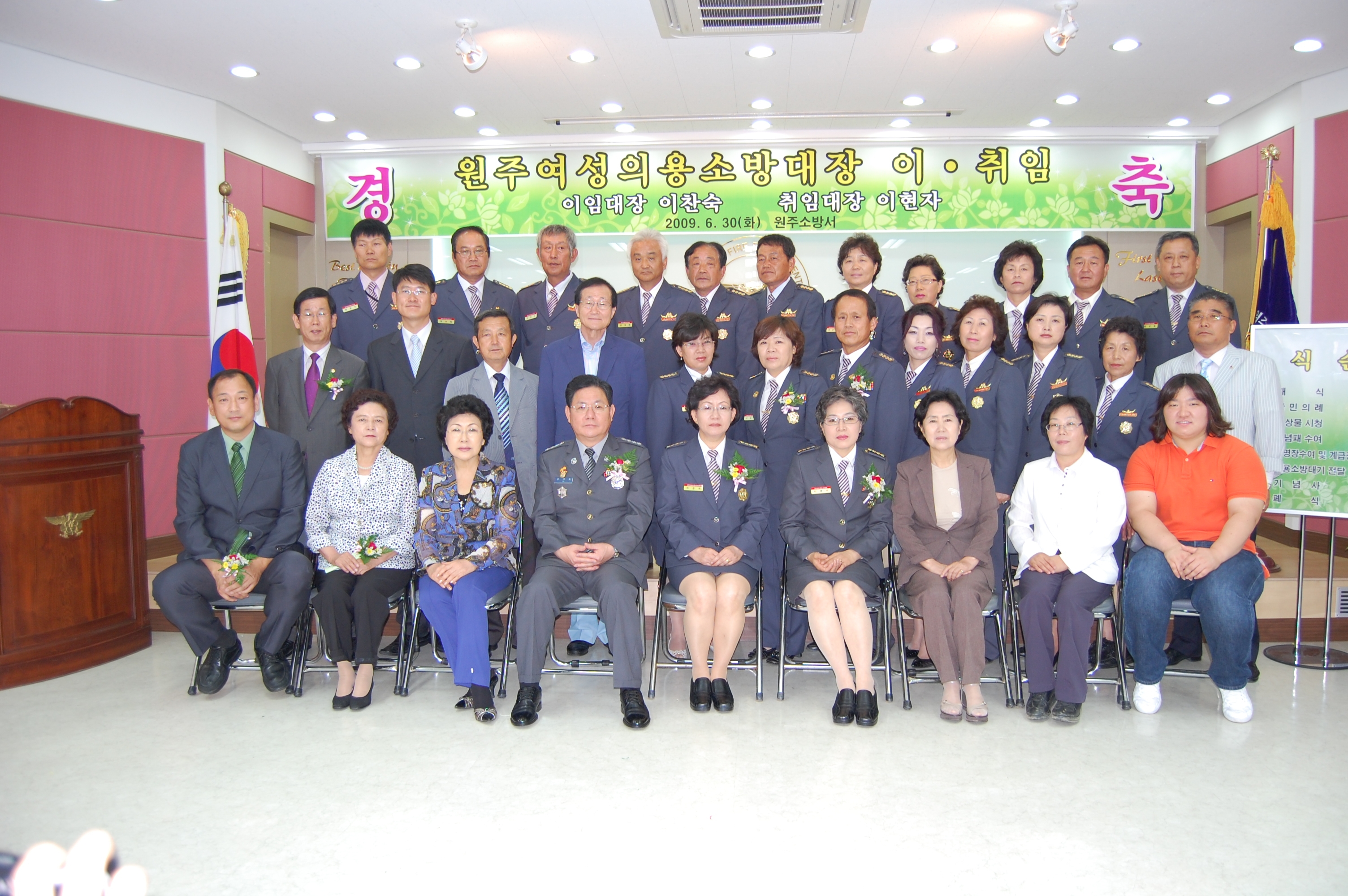 장미란 선수 뒤에는 원주소방서 의용소방대가 있습니다.