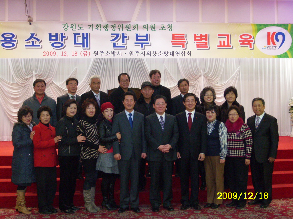 원주여성의용소방대 간부들은 2009년 12월 18일 (금) 중앙웨딩홀에서 있었던 2009 의용소방대 간부 특별교육에 참석하였습니다.