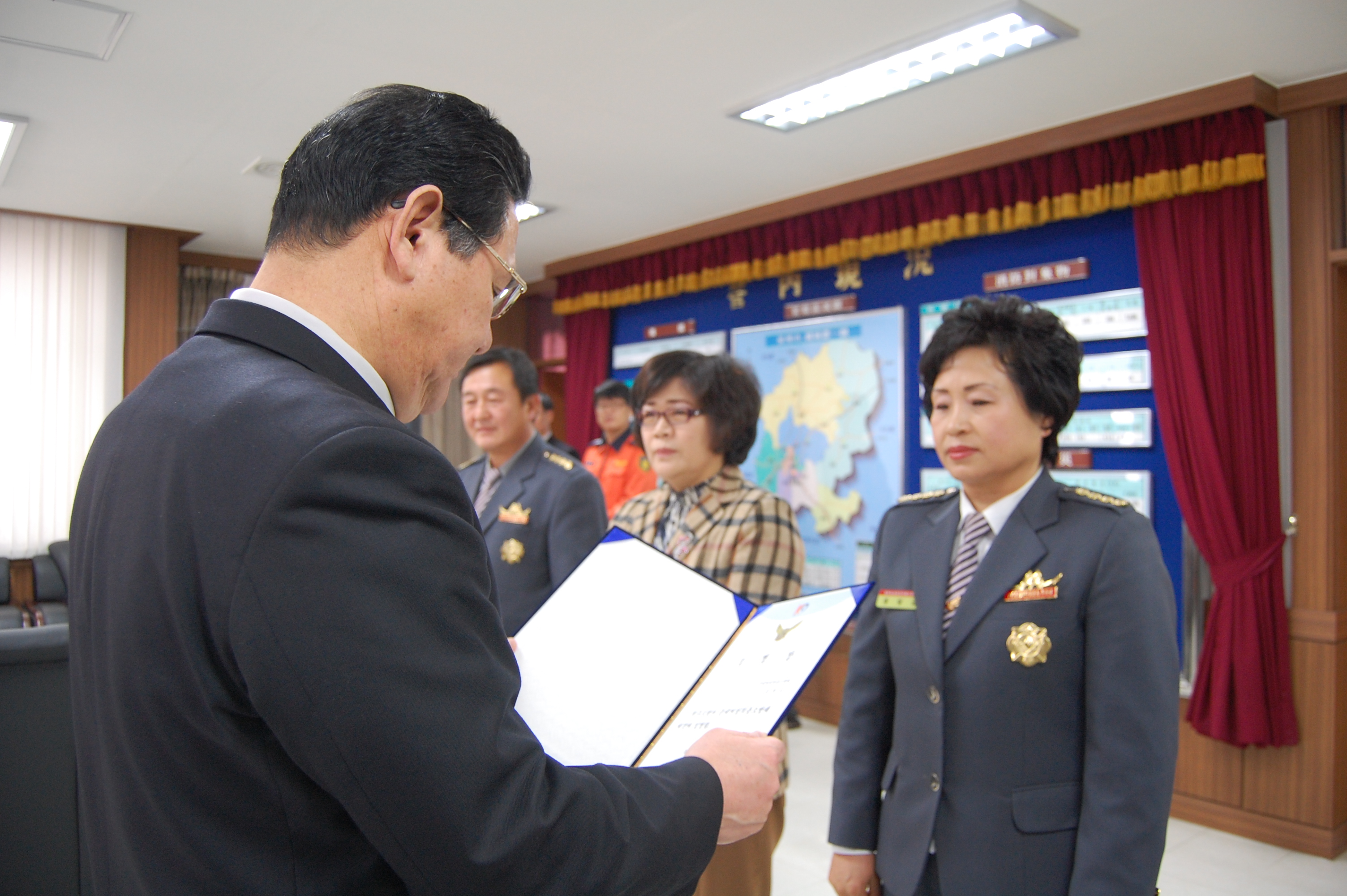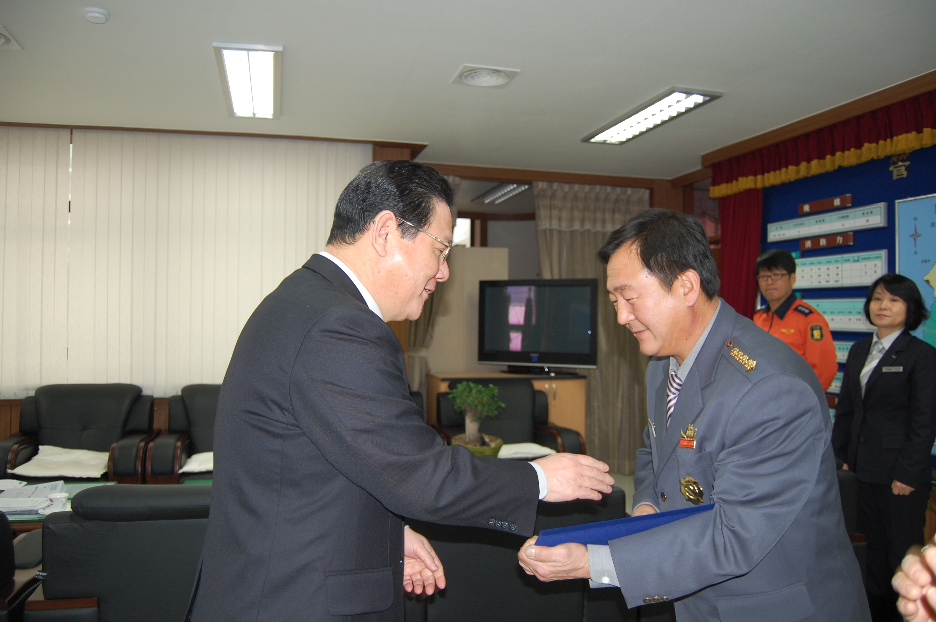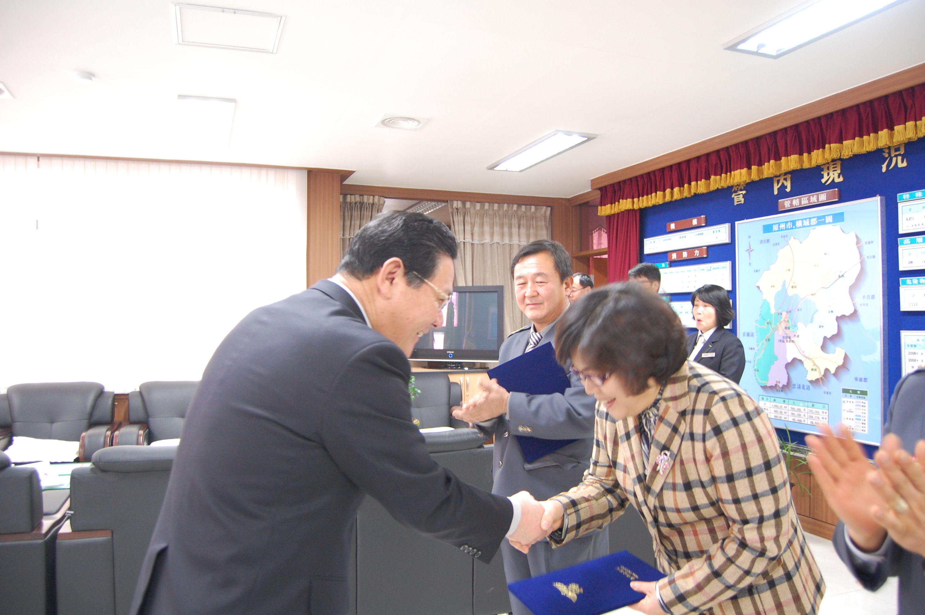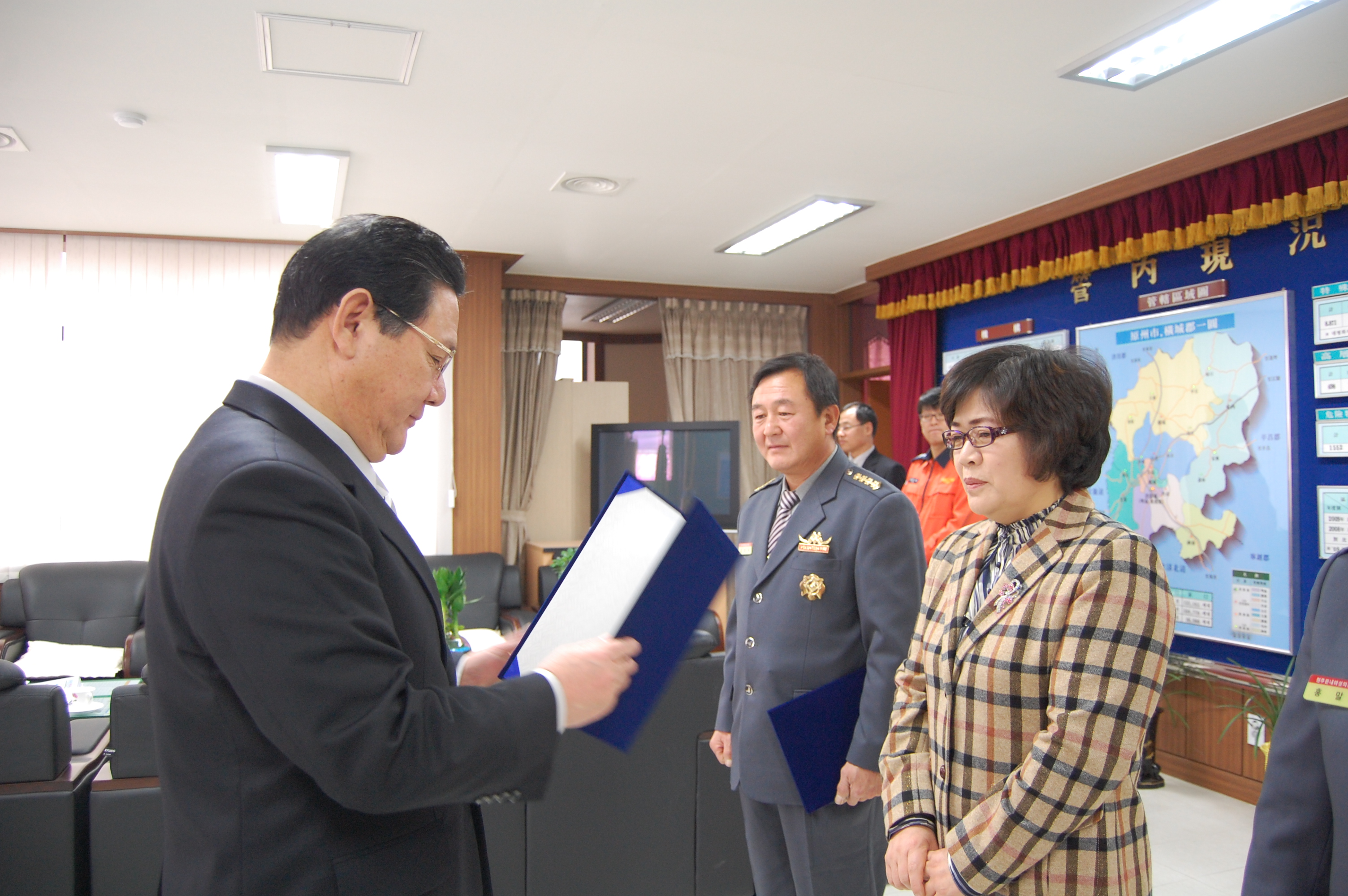 부론의소대장 김진수, 흥업여성대장 오오석, 둔내여성대장 홍말금은 3년 동안 각 대의 화재예방 및 봉사활동 등 지역의 안전을 위하여 남다른 열과 성의로 대원들의 화합은 물론 주변의 어려운 이웃을 위한 봉사활동을 수없이 전개하여 지역에서의 의소대 위치를 높이는데 최선을 다하였습니다.
