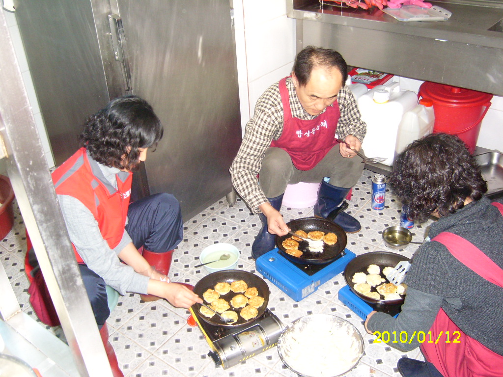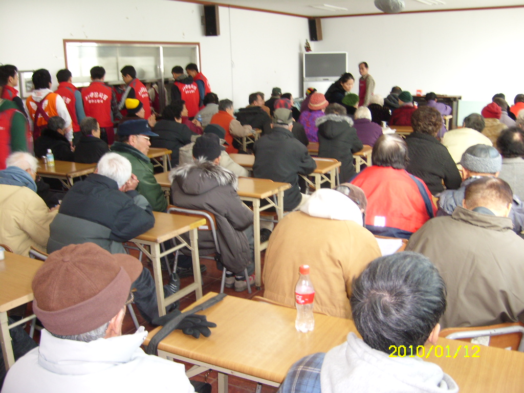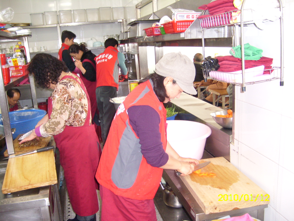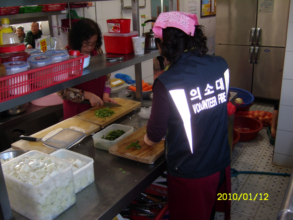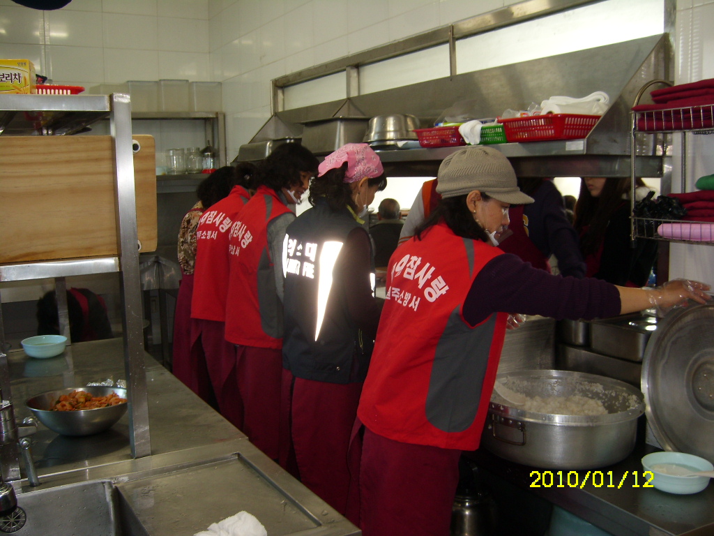 원주여성의용소방대에서는 2010년 1월 12일 (화) 원주시 원동 160-1번지에 있는 밥상공동체로 무료급식 봉사활동을 다녀왔습니다.