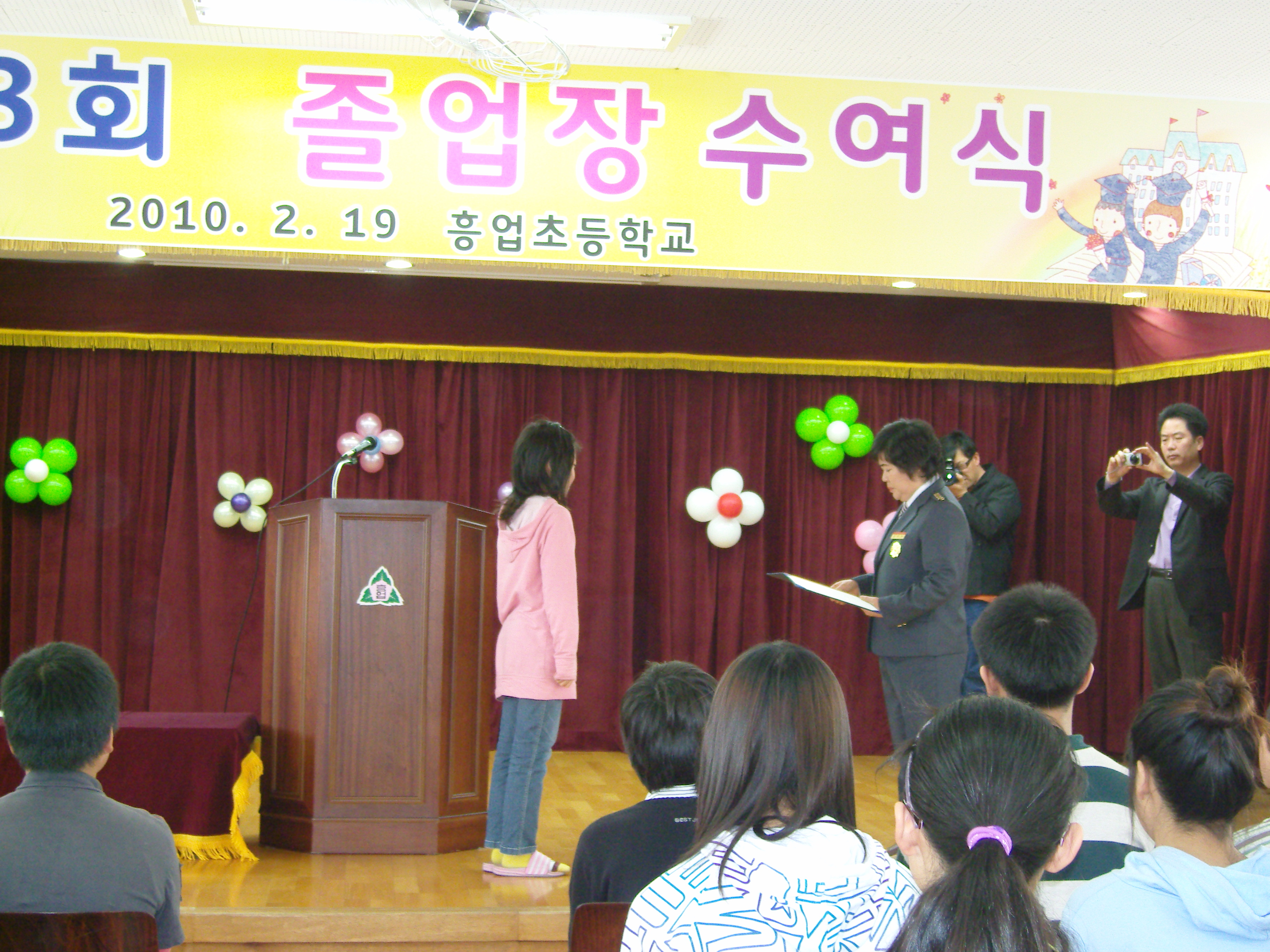 지난 2월17일과19일 흥업여성의용소방대(대장 오오석)에서는 관내에 있는 초등학교(흥업초,매지초)졸업식에 참석하여 장학금을 전달 하였습니다. 특히 소수의 정원이 졸업을하는 매지초교는 졸업생 전원이 한복을 곱게 차려입고 똘망똘망한 눈빛으로 각자의 포부와 선생님께 감사의 글을 전하는 시간이 특색있는 졸업식을 만들었고 축하의 공연으로 사물공연과 밴드공연을 함께해줘서 정말 멋지고 아름다운 졸업식이었답니다.