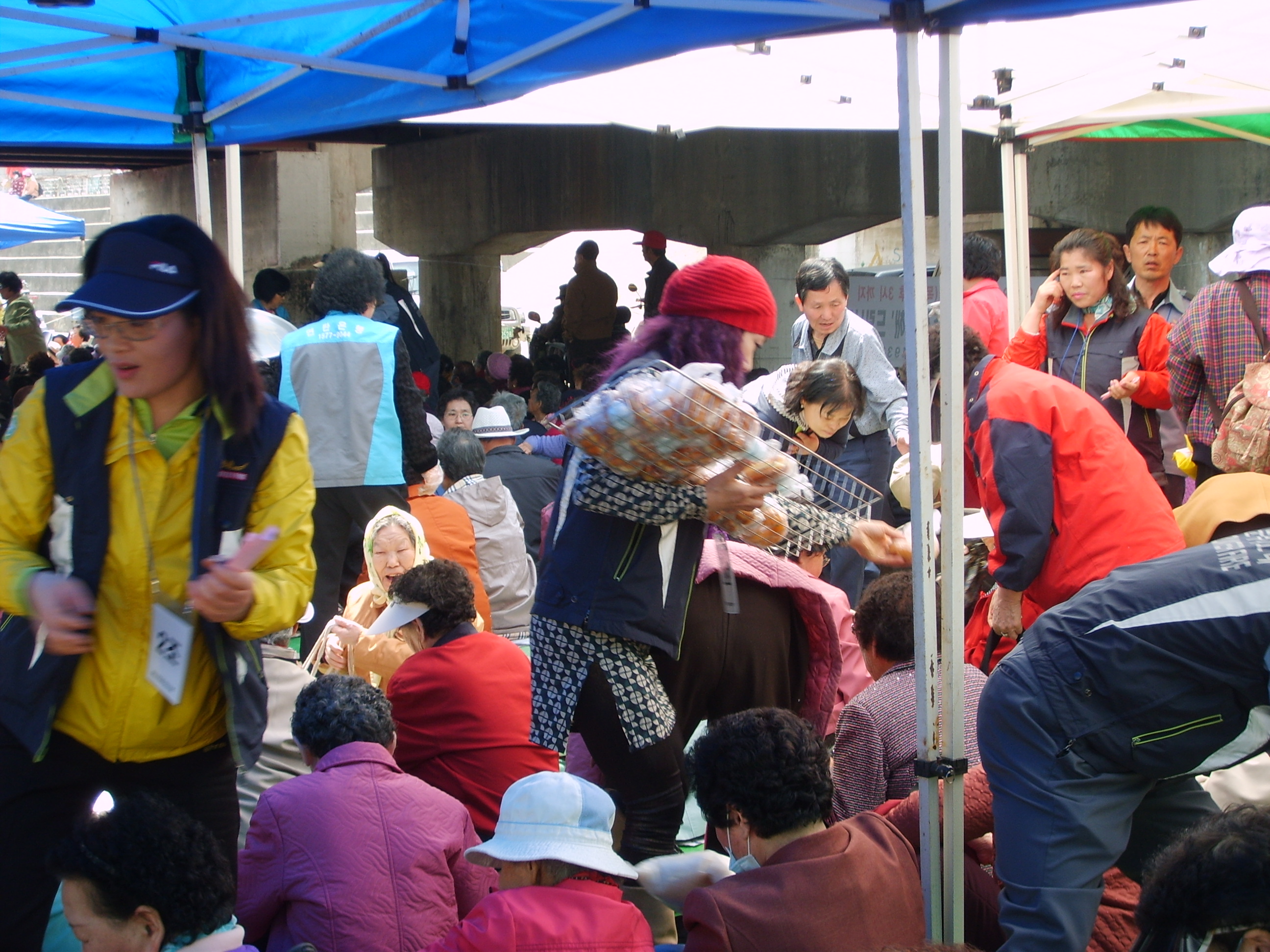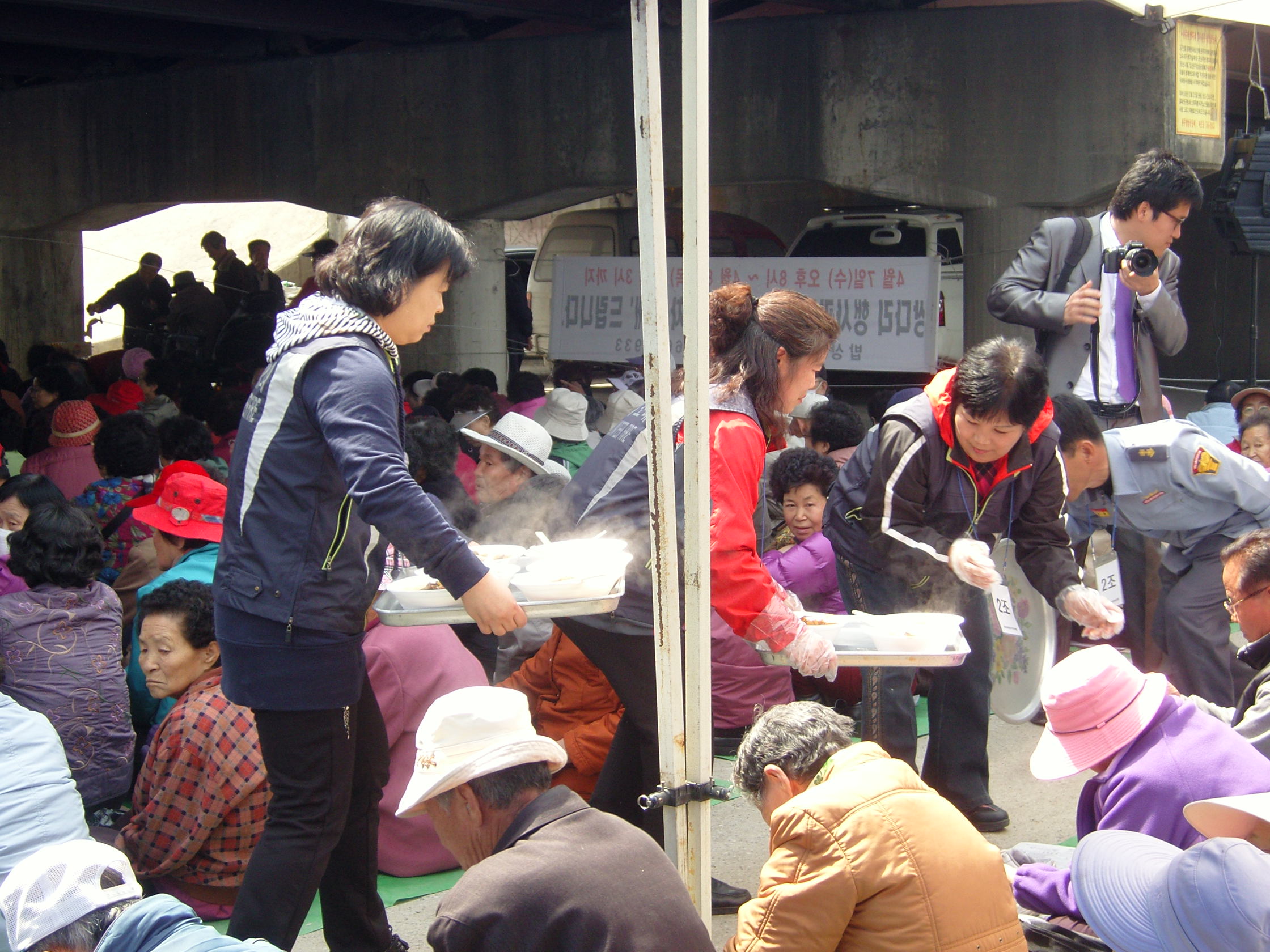 점심식사를 마치고 쌀과 빵을 가지고 집으로 돌아가시는 많은
