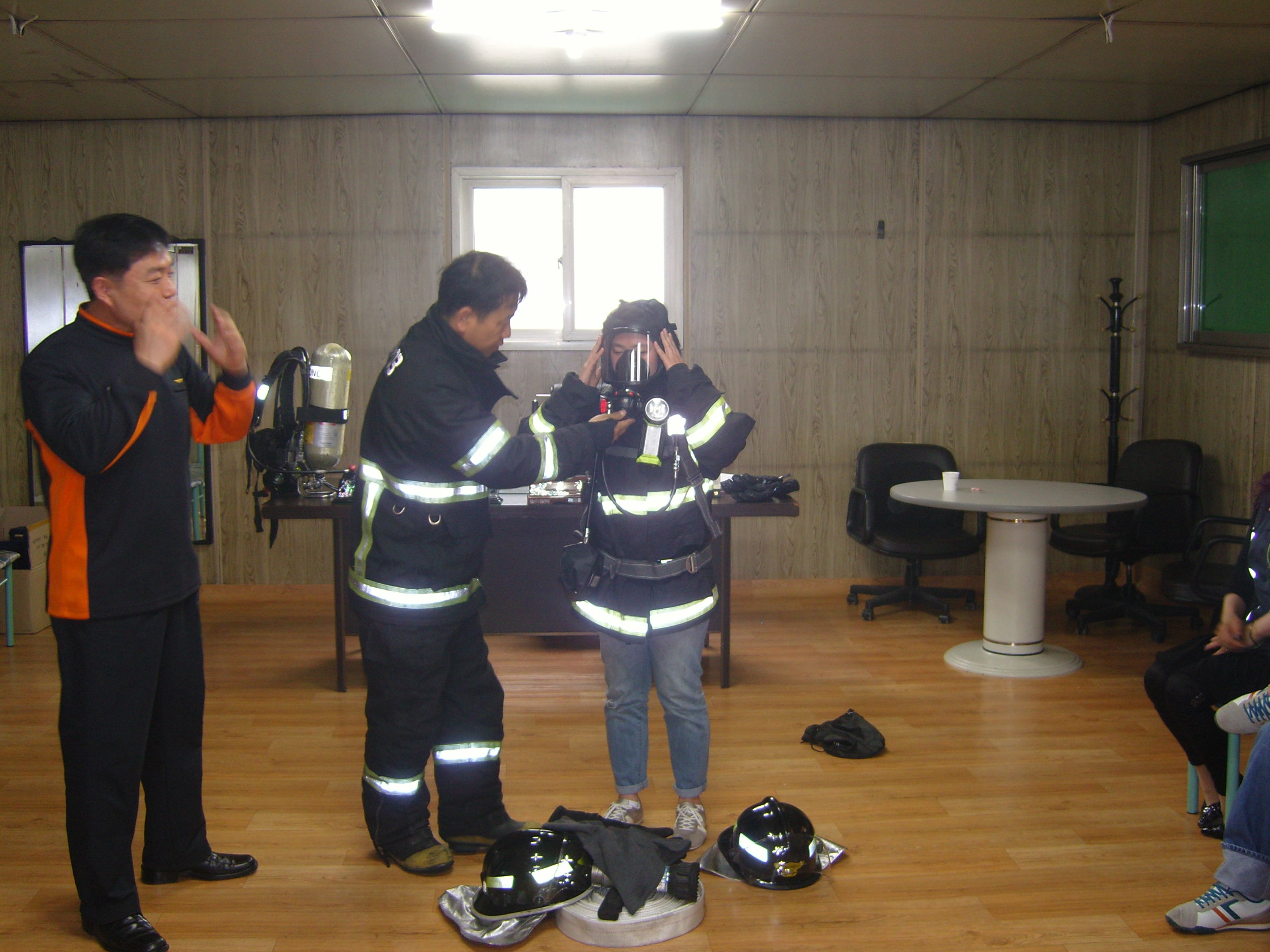 팀장님이 직접 방화복을 착용하시고 입장하셨습니다.