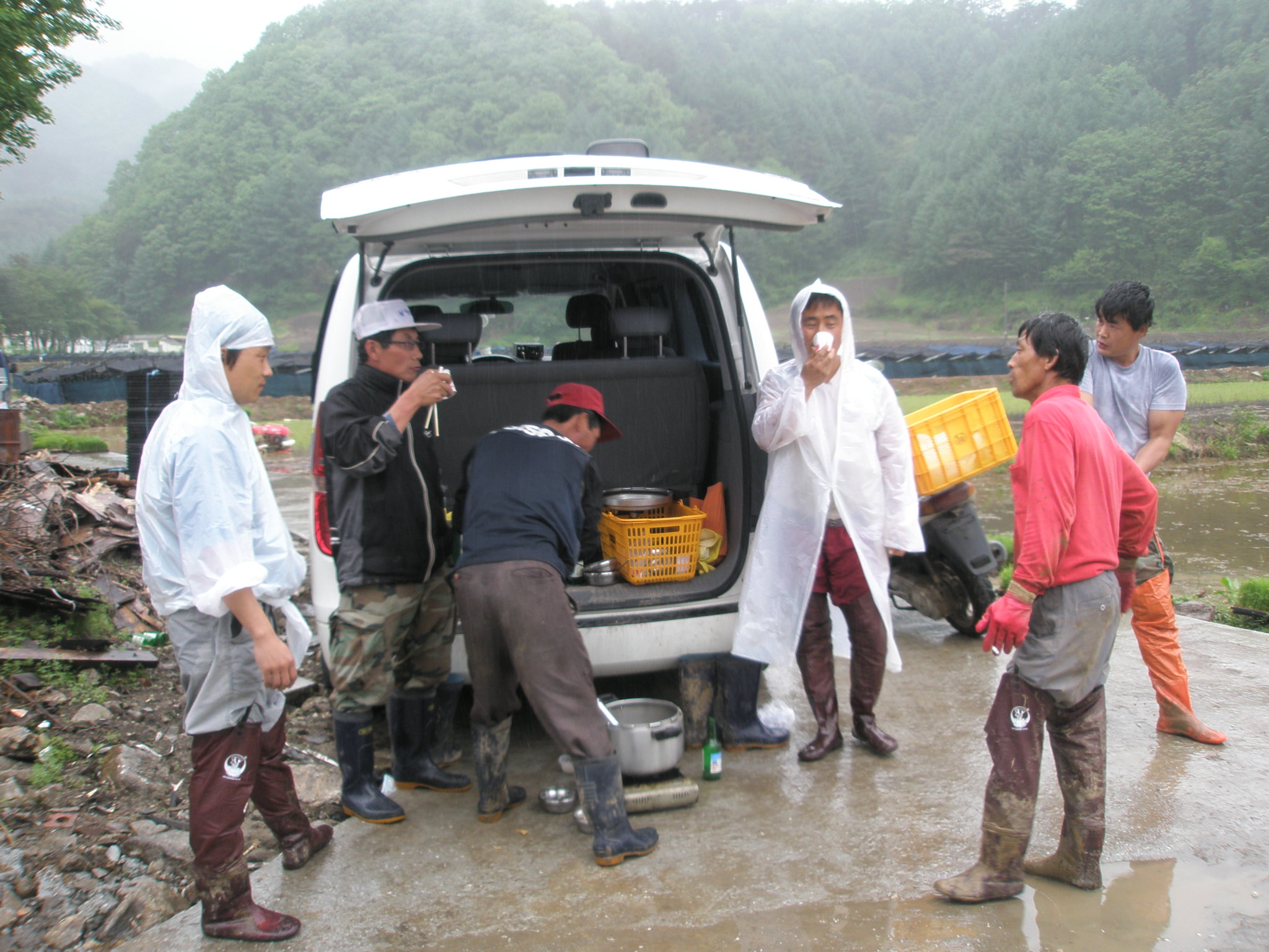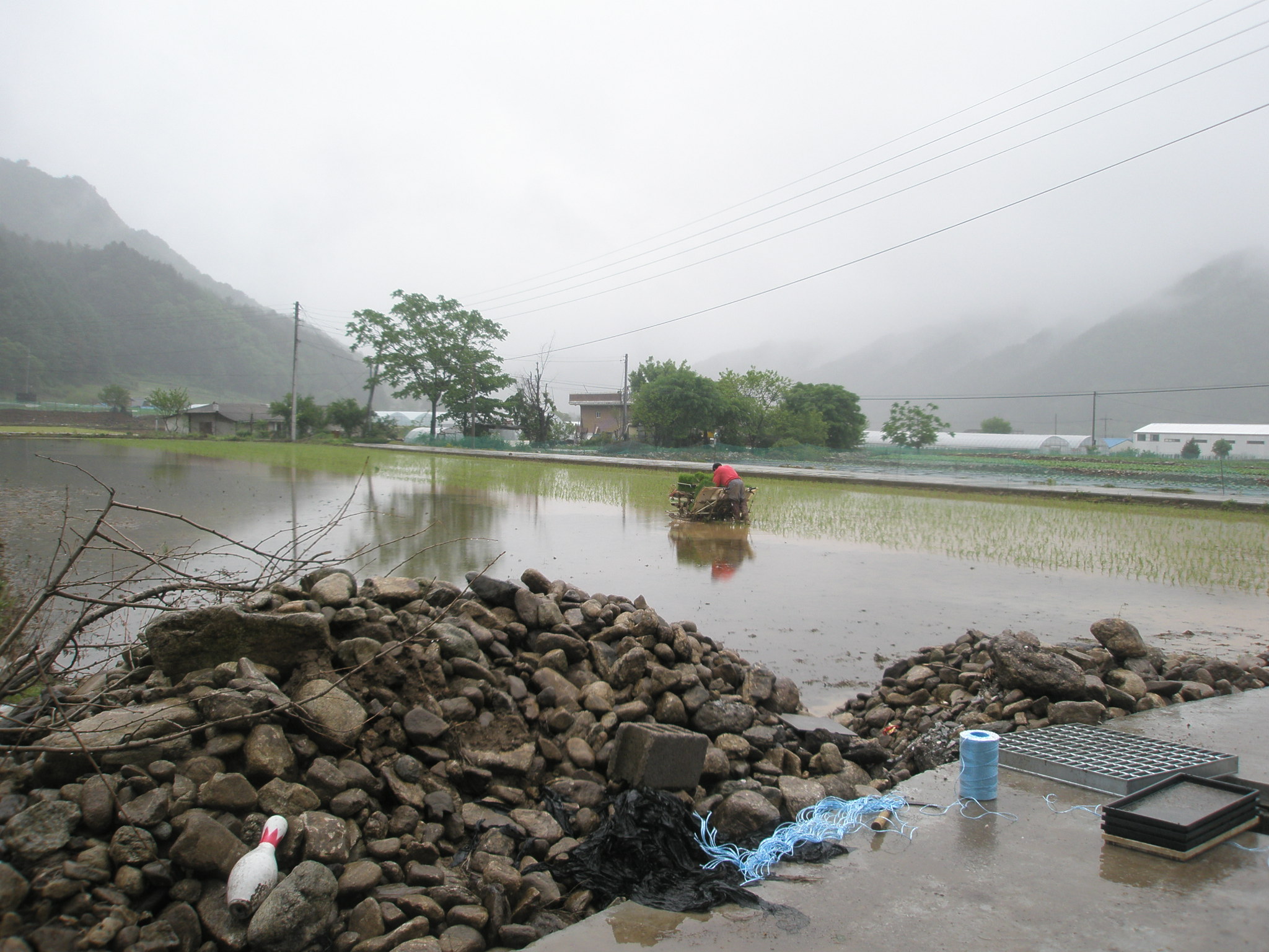 하였습니다, 비가오는 궂은 날씨임에도 참석해 모내기를 마칠수 있도록
