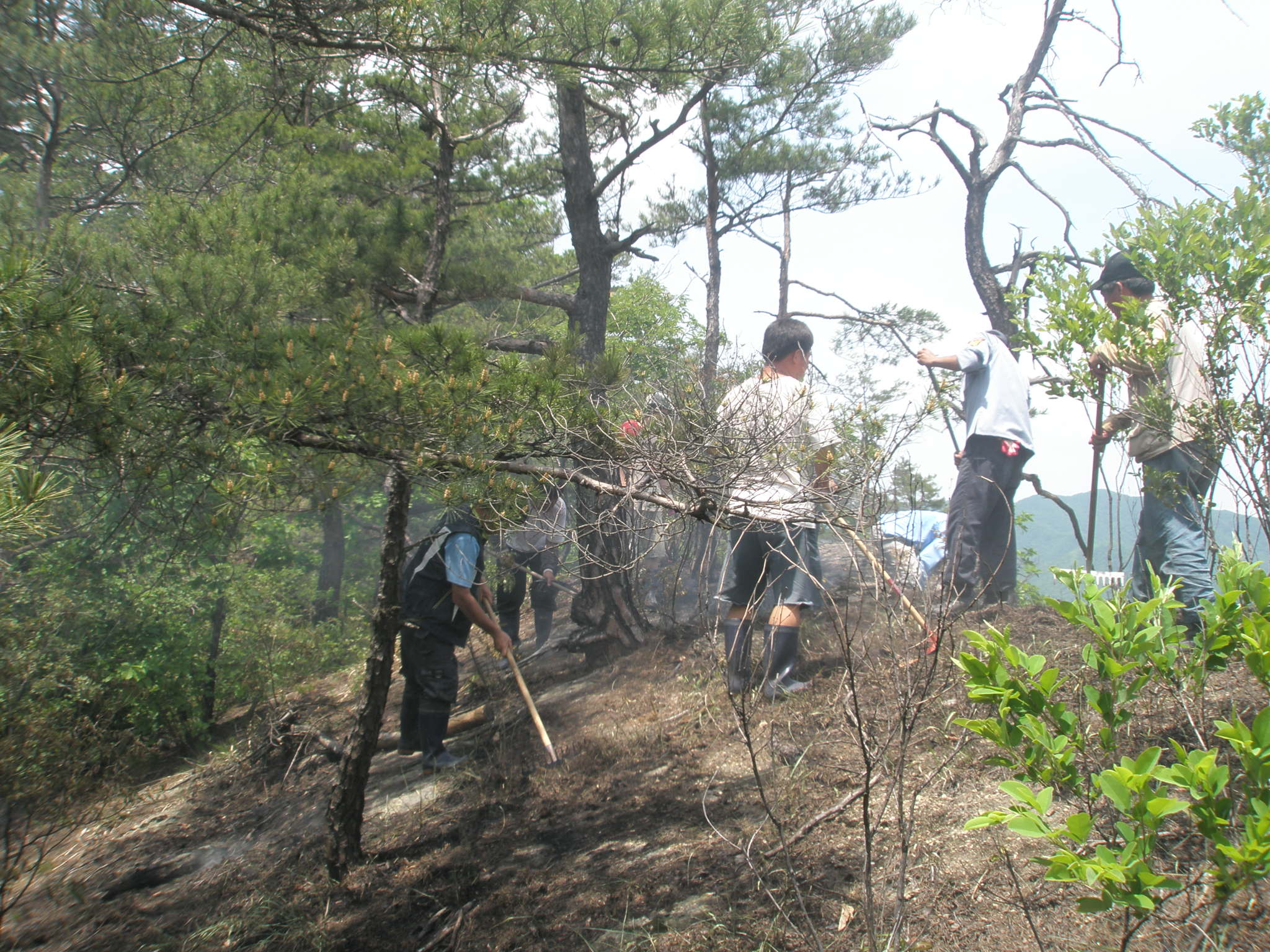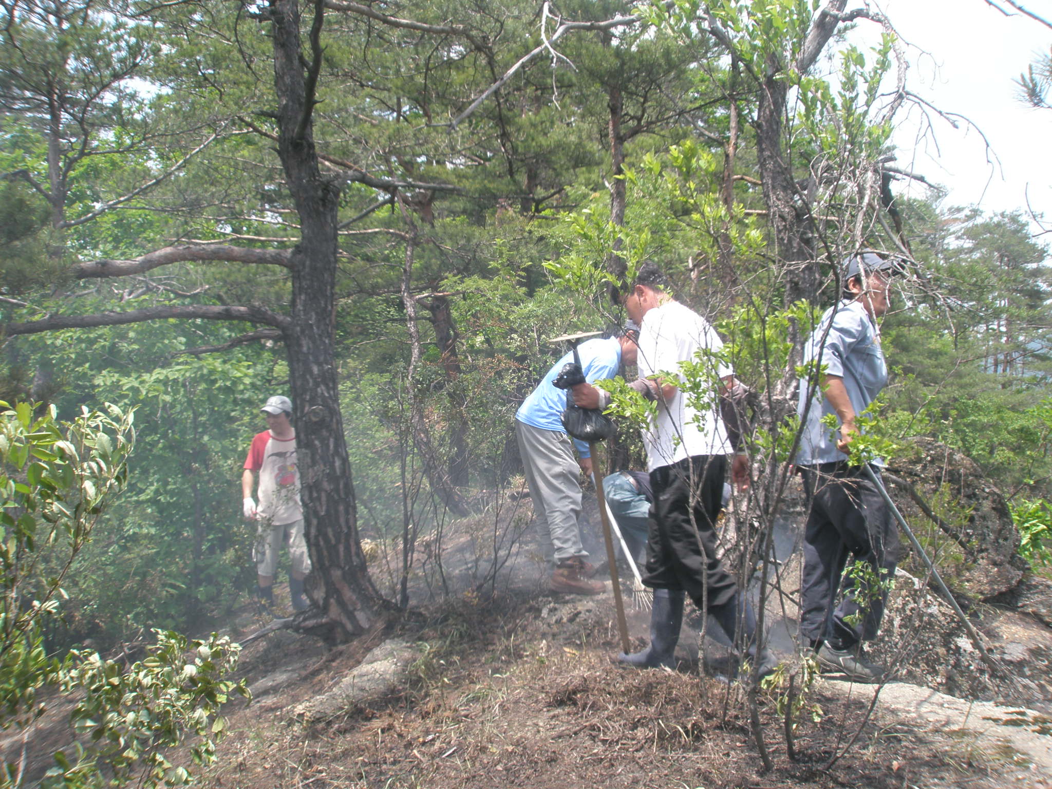 하며 잔불 정리 및 진압하였습니다. 우리 지역은 한창 농번기라 바쁨에도 불구하고 산불 진