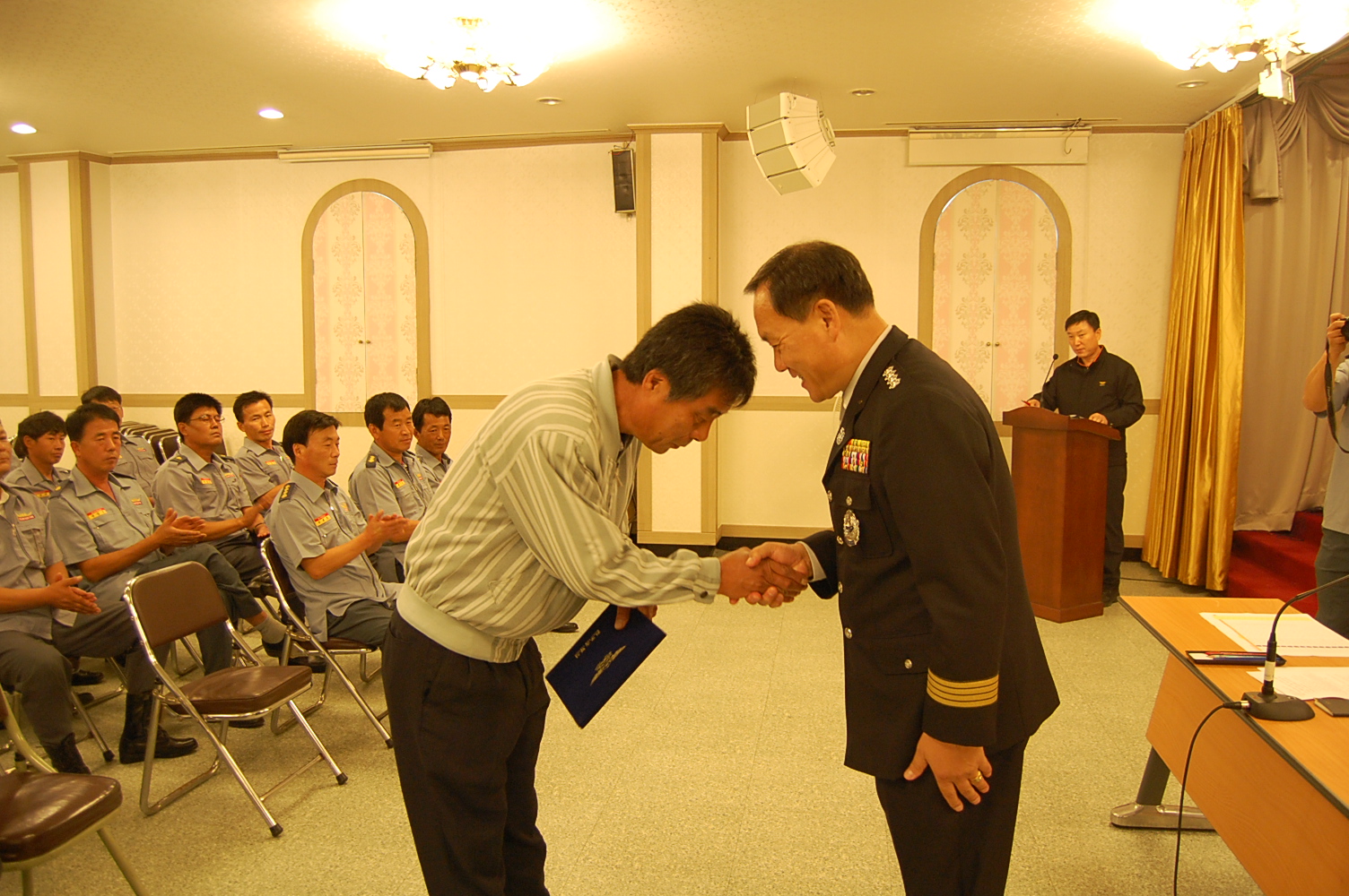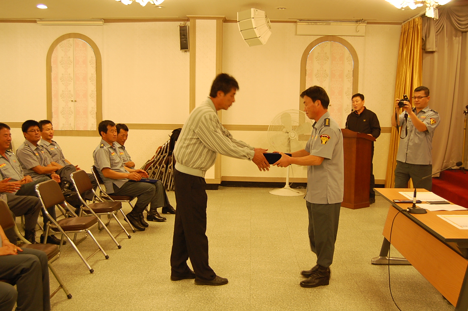 오늘은 특히 14년 기간 동안 지역안전 지킴이로서 묵묵히 자리하신 김영래 방호부장의 감사장 전달 및 감사패 전달이 있었습니다.