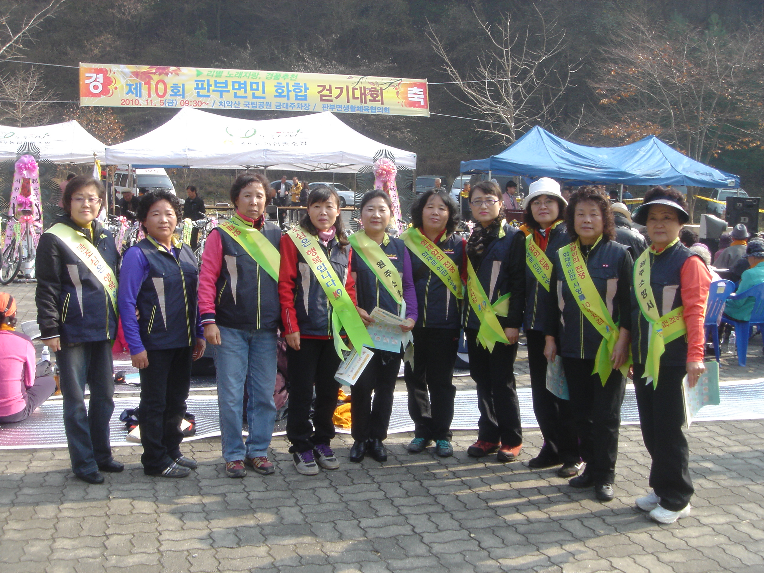 판부여성의용소방대 (대장 노순일외14명) 는 2010년 11월5일 10:00~12:00 까지 판부면 걷기대회 화합의장에서 참석하신 모든분들을 대상으로 화재와의 전쟁캠페인및 소방차 길터주기 안내문을 배부하였습니다.