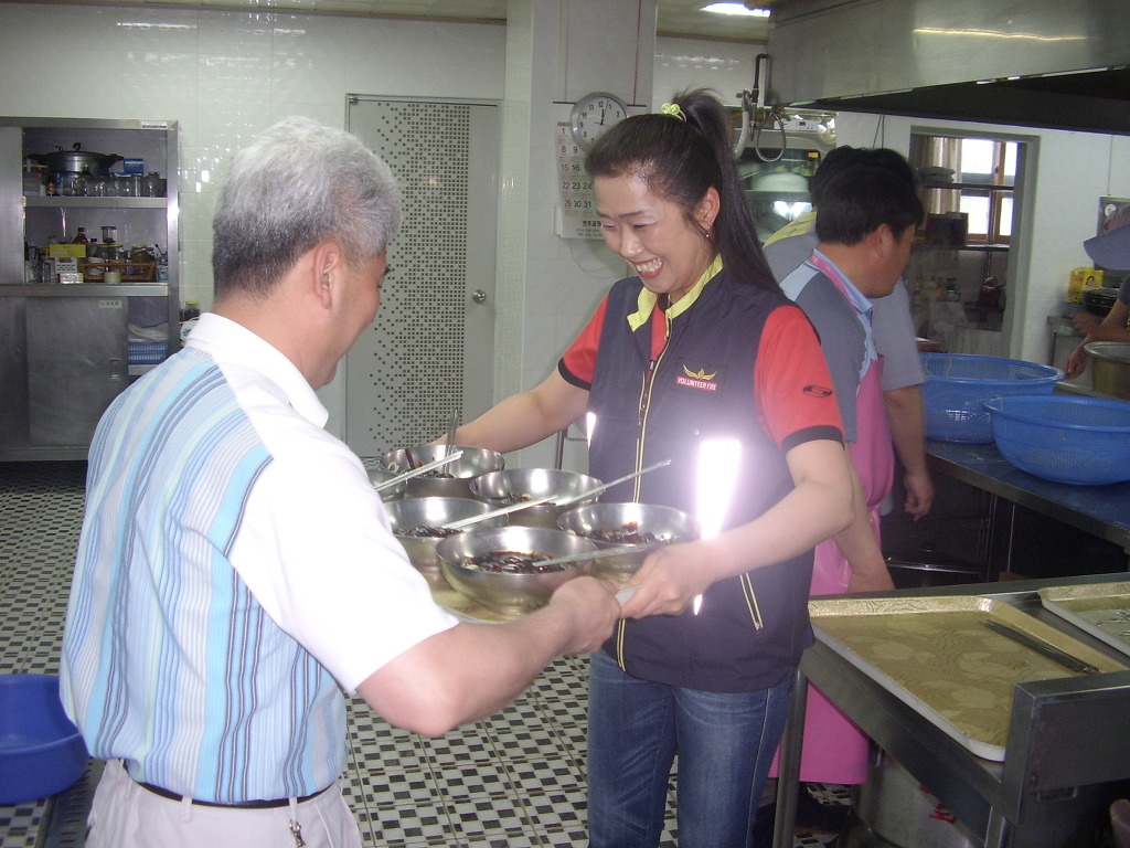 한달에 다섯명씩 돌아가면서 짜장면을 먹었는데 이번에는 재활원식구들 80여명이