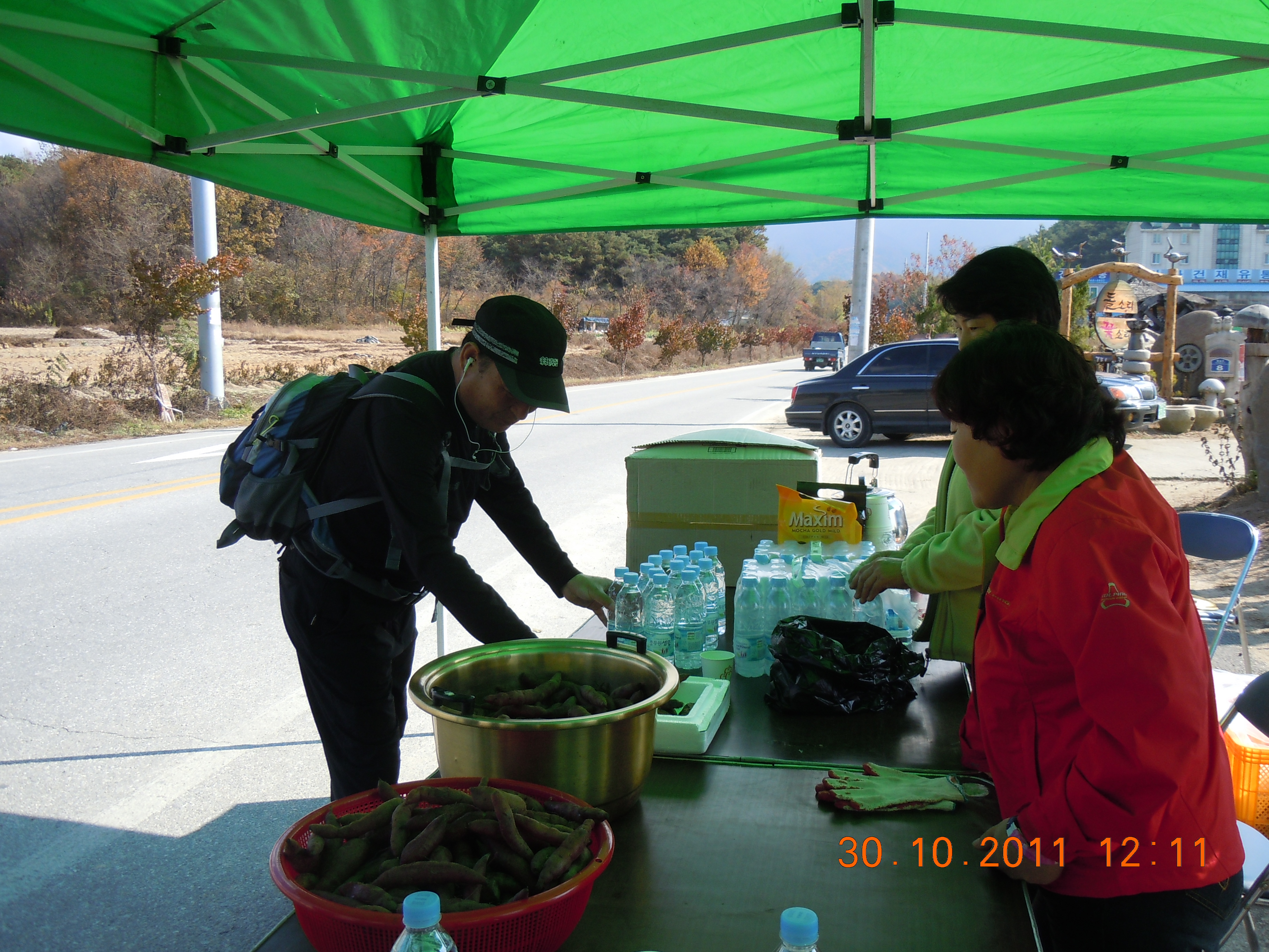 소초면 흥양리에서 걷기대회에 참가하시는 분들께 생수와 직접 재배하신 고구마를 삶아서 나누워드렸습니다..
