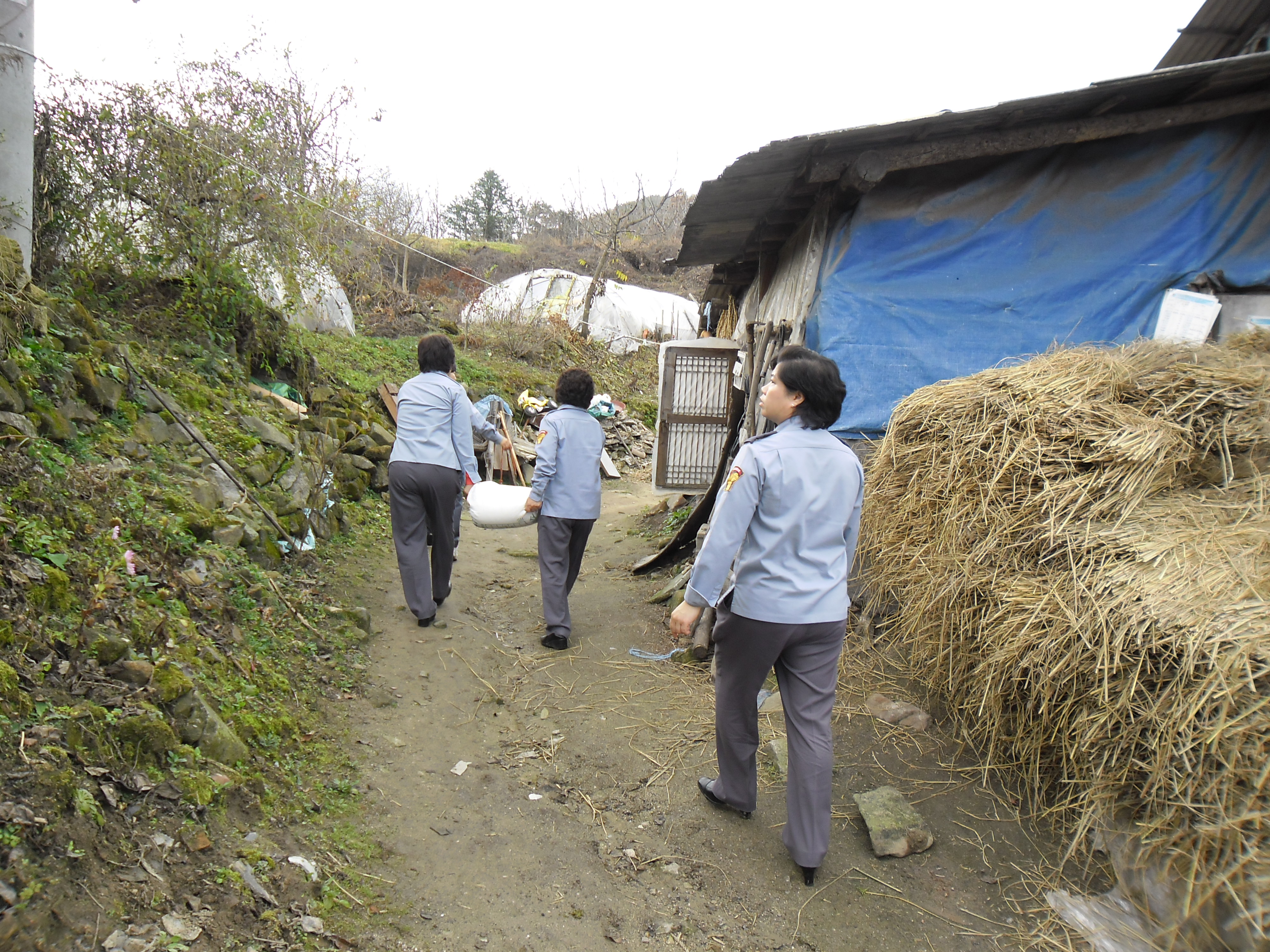 2011년 11월 23일(수) 13:00 흥업여성의용소방대(대장 오오석외 7명)는 대안리에서 암투병중이신 임인규씨 댁을 방문하여 11월 정기교육에 대원들이 정성들여 모은 쌀 20Kg을 전해드렸습니다.