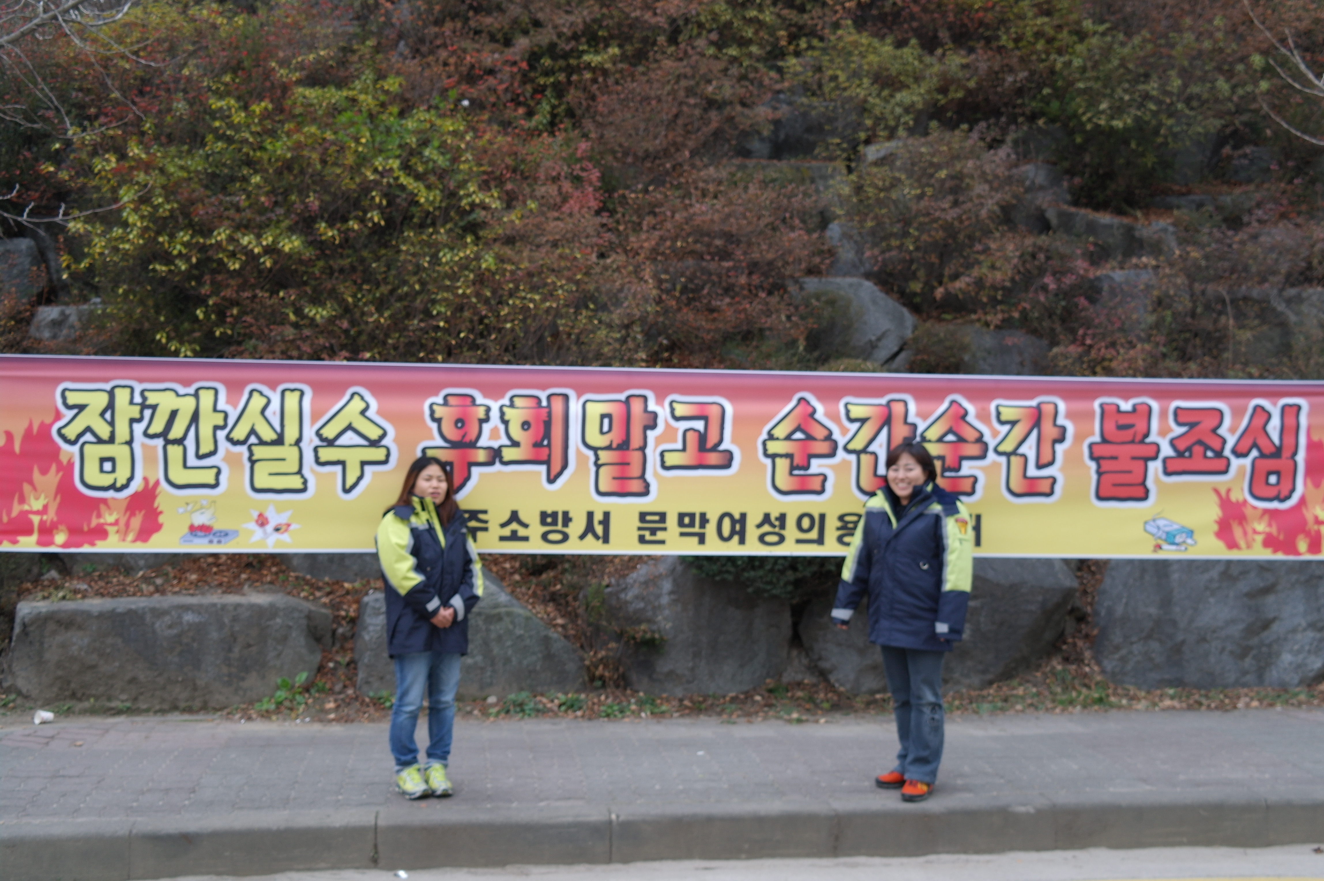 짝을 지어 건등산 주변 명봉산 주변 등 산불예방 캠페인 중입니다^*^